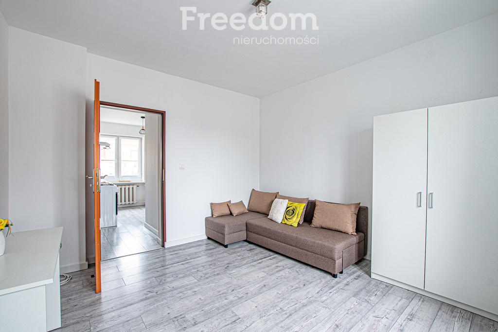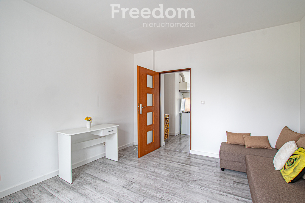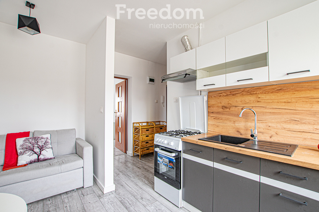 Oddzielna kuchnia to duży atut – została wyposażona w niezbędny sprzęt AGD, a dodatkowo wygospodarowano w niej przytulny kącik wypoczynkowy z rozkładaną sofą, co daje jeszcze większą funkcjonalność przestrzeni. Mieszkanie posiada również przedpokój oraz łazienkę z prysznicem, pralką i niezbędną zabudową.