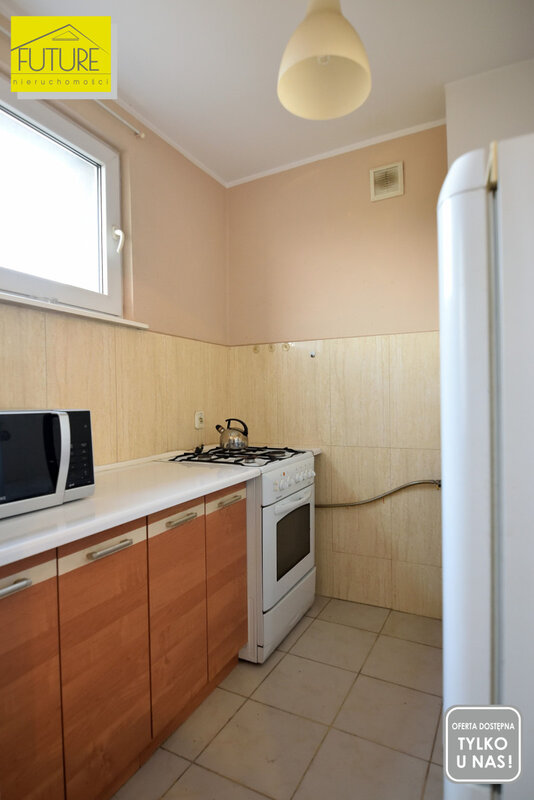 W kuchni pozostaje w cenie kuchenka gazowa 4 palnikowa, mikrofala, lodówka, meble kuchenne.