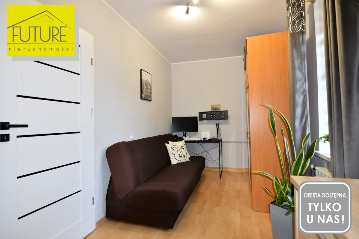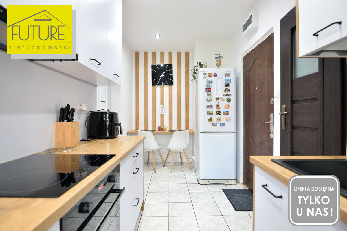 W cenie pozostaje zabudowa kuchni wraz z wyposażeniem (płyta indukcyjna, piekarnik elektryczny, okap, lodówka) wyposażenie łazienki (szafki, pralka) oraz szafa z małego pokoju - pozostałe meble do uzgodnienia.