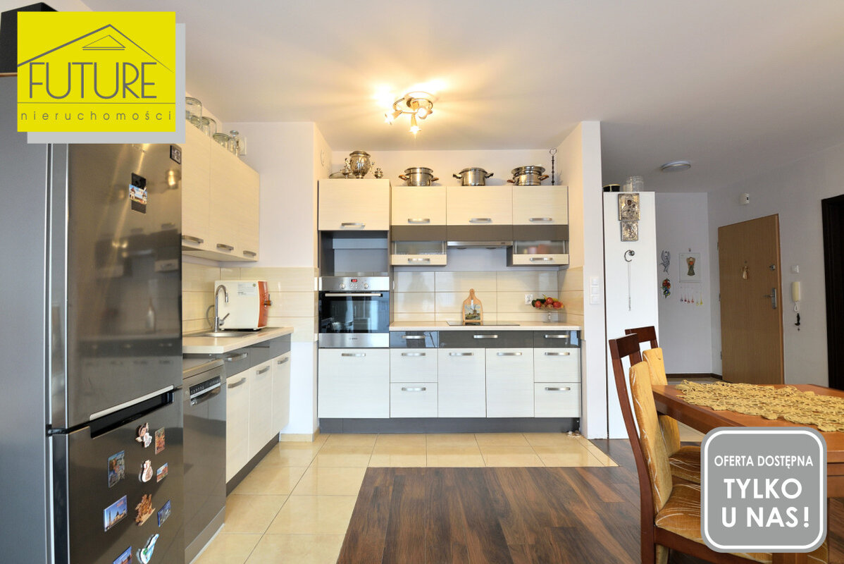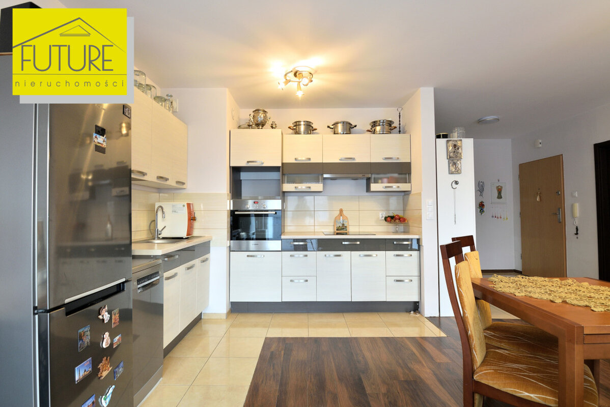 W mieszkaniu pozostają zabudowa kuchenna, wraz z wyposażeniem AGD: lodówka, płyta indukcyjna, piekarnik, elektryczny okap oraz zmywarka.