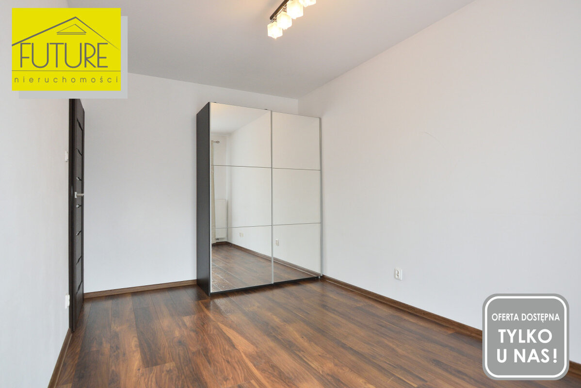 W cenie mieszkania jest także szafa w sypialni obudowana lustrami, która nadaje pomieszczeniu przestronności i lekkości.