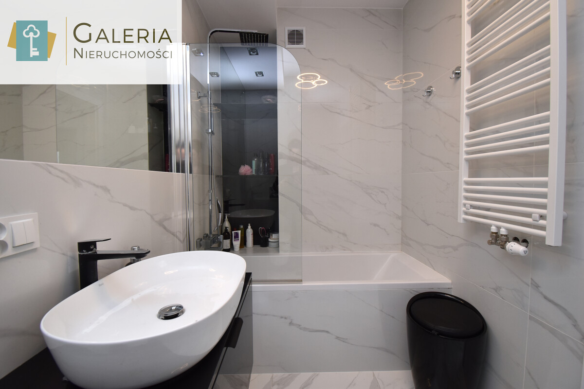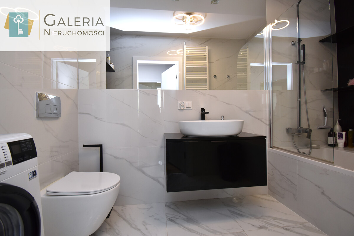 Zastosowano drzwi bezprzylgowe, co podkreśla nowoczesny styl wnętrza. Całe wyposażenie mieszkania może pozostać w cenie.