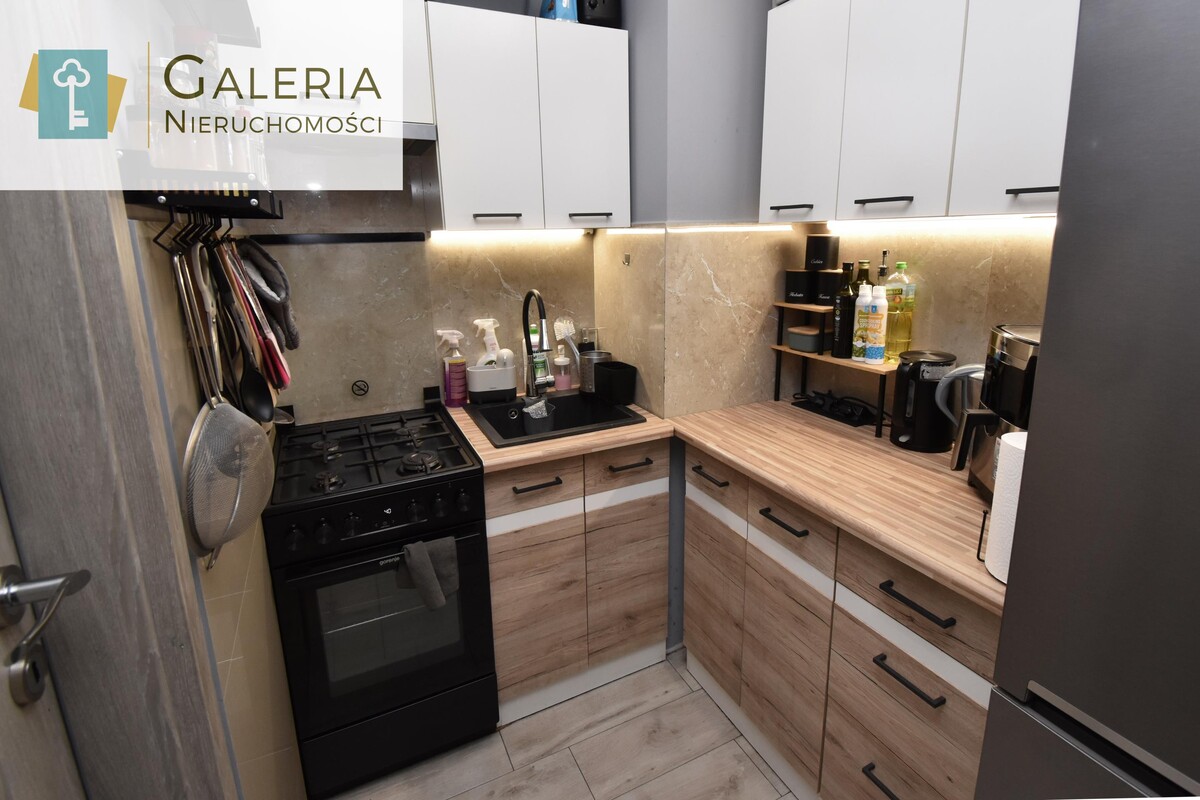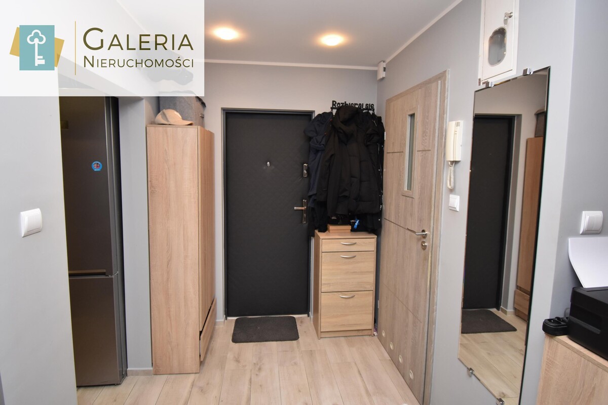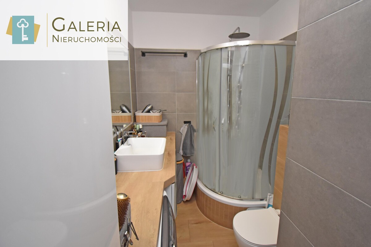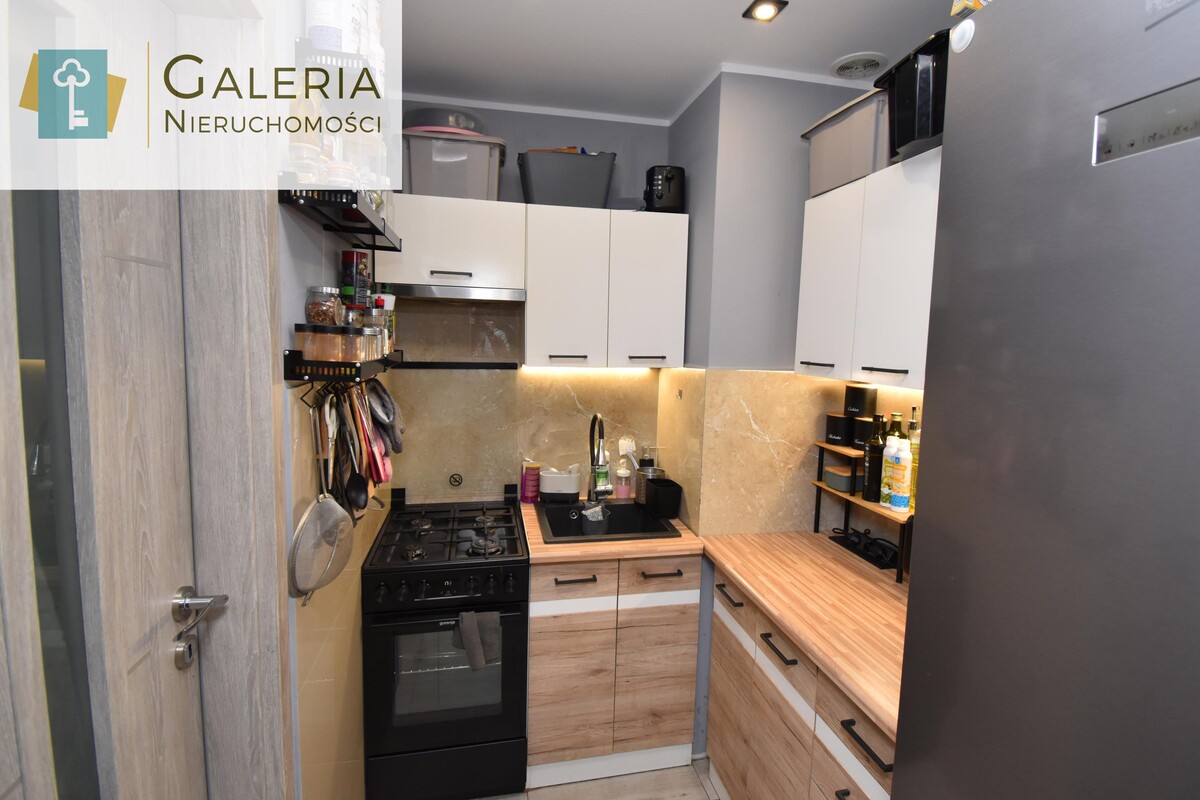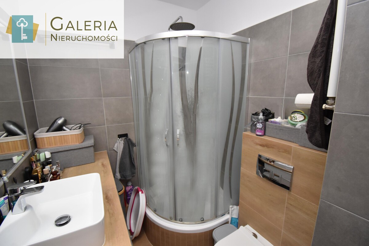 Kuchnia jest w pełni wyposażona, a w łazience znajduje się kabina prysznicowa, zapewniająca wygodę codziennego użytkowania. W przedpokoju umieszczono szafę do przechowywania, która pozwala na utrzymanie porządku. Do mieszkania przynależy również piwnica.