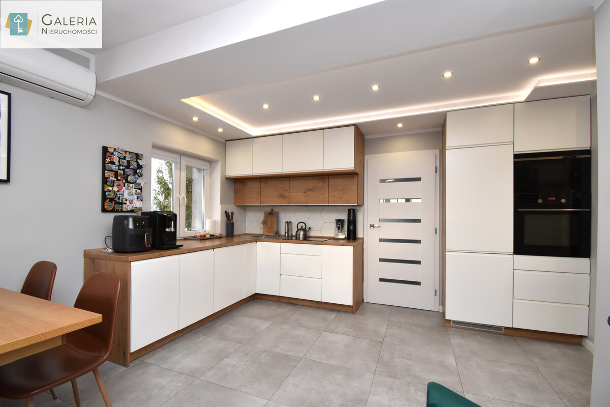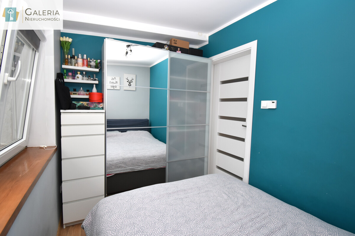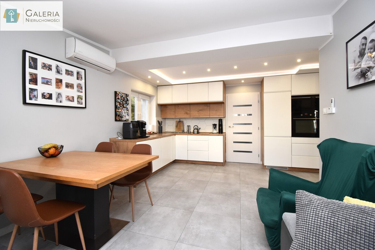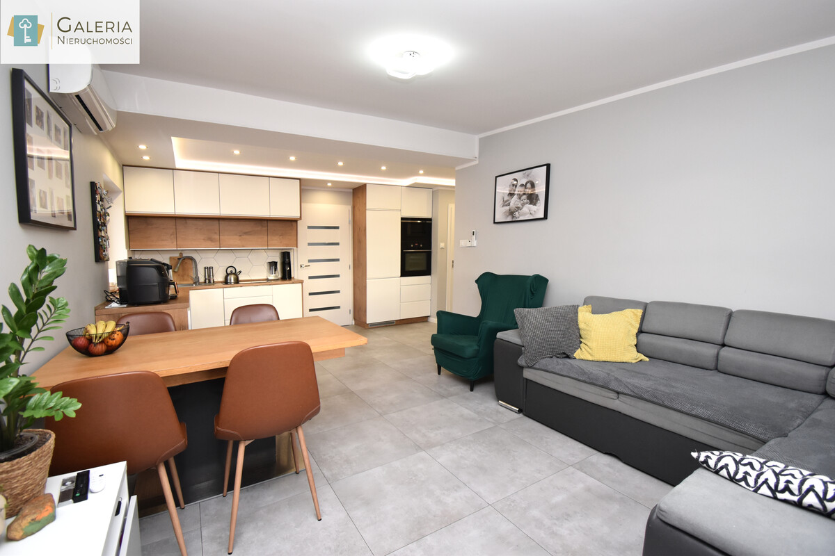 Sercem nieruchomości jest przestronny salon połączony z aneksem kuchennym idealne miejsce do odpoczynku i wspólnego spędzania czasu. Nowoczesna zabudowa kuchenna w modnej kolorystyce oferuje dużo miejsca do przechowywania i doskonale komponuje się z wnętrzem. W oddzielnej sypialni znajduje się pojemna szafa w zabudowie, która ułatwia organizację przestrzeni.