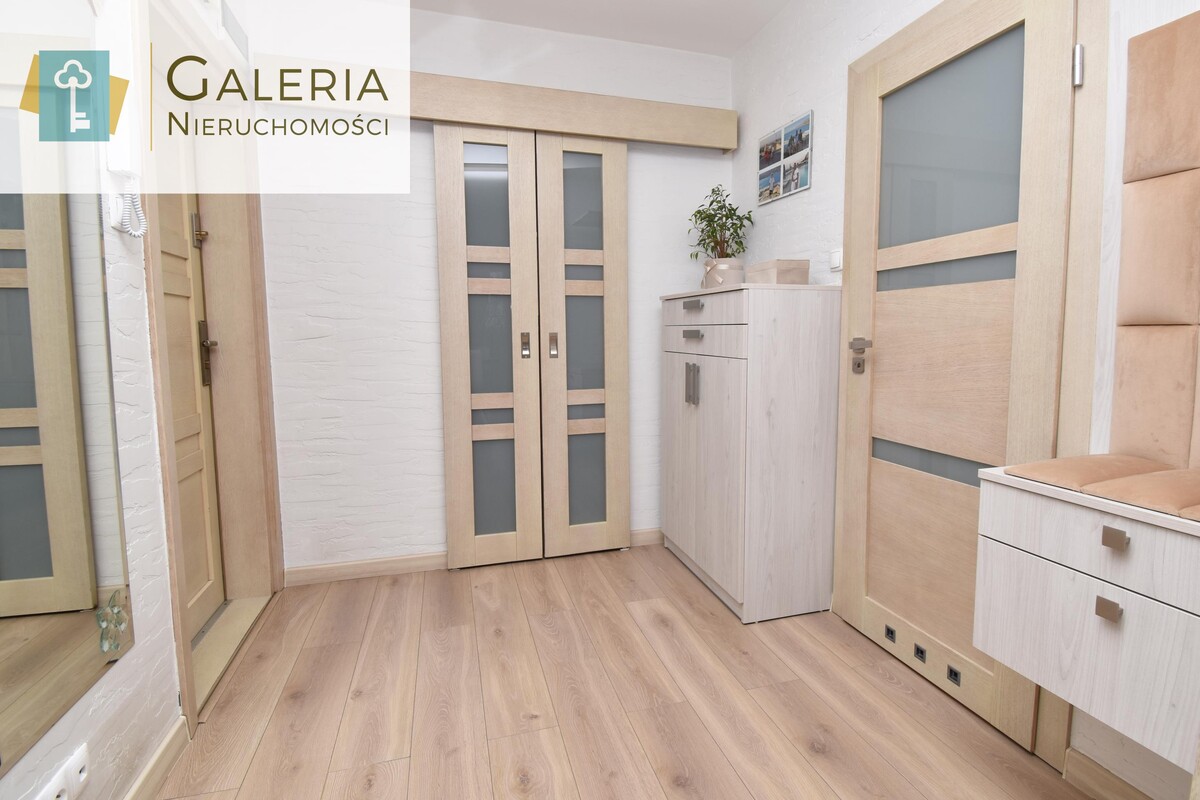 - przedpokoju zapewniającego dostęp do wszystkich pomieszczeń. W mieszkaniu znajdują się meble wykonane na wymiar, co pozwala na wygodne przechowywanie i optymalne wykorzystanie przestrzeni.