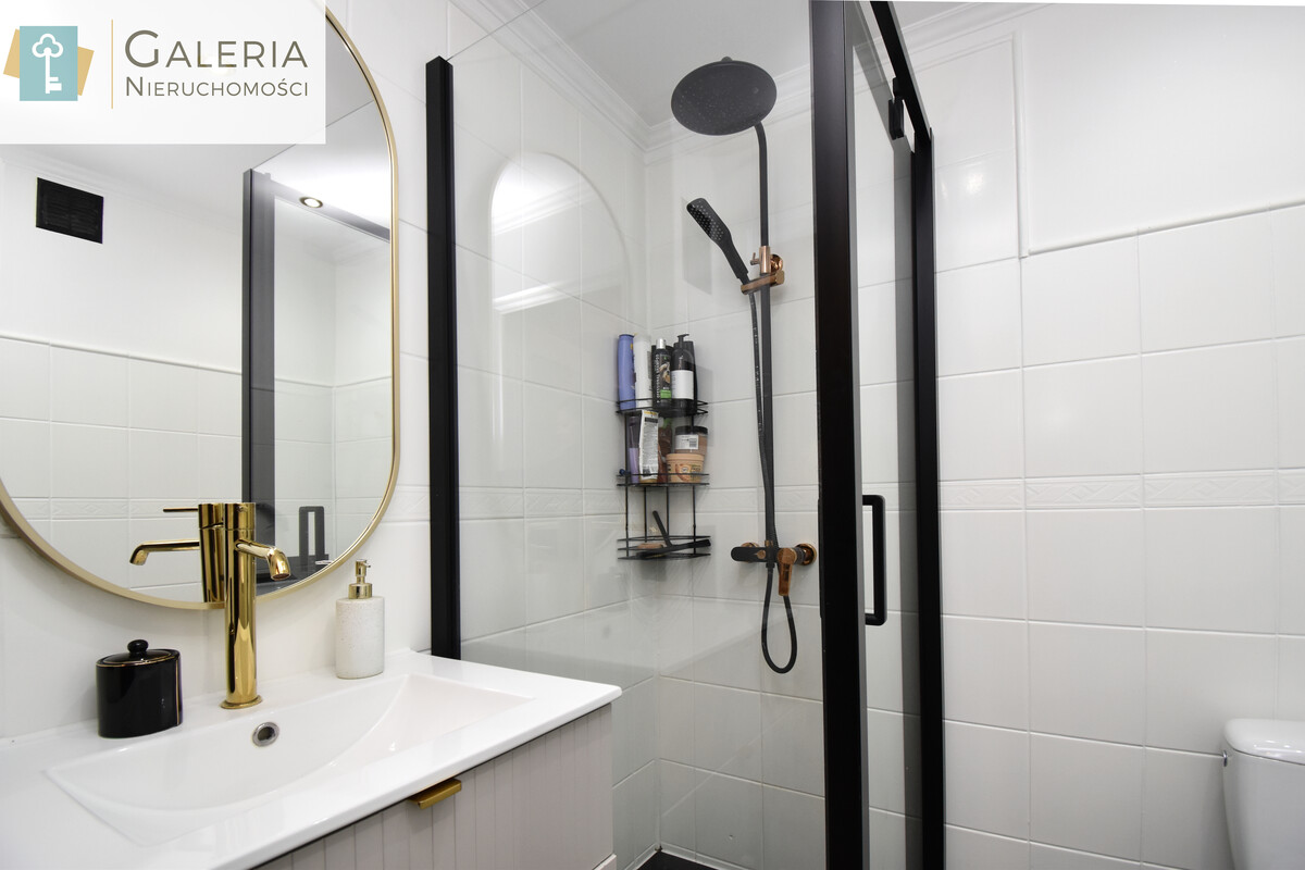 * Łazienka z kabiną prysznicową.