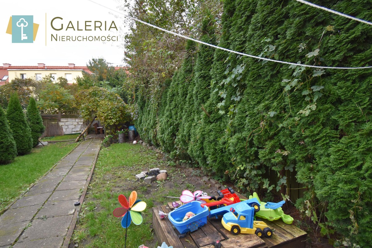 - Ogród z częścią rekreacyjną- właściciel korzysta z ogródka, na końcu którego znajduje się strefa wypoczynku z ławką i stołem idealna na poranną kawę lub letnie spotkania przy grillu.