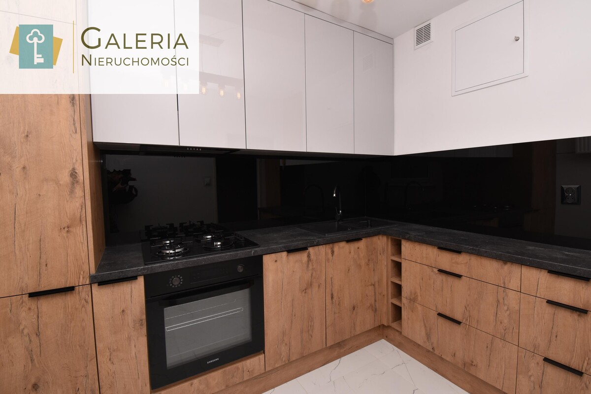 Ogromny atut! Nowoczesna zabudowa meblowa, piekarnik, płyta gazowa, okap, zmywarka, sporo przestrzeni roboczej i miejsce na stół wszystko, by komfortowo gotować i funkcjonować na co dzień.