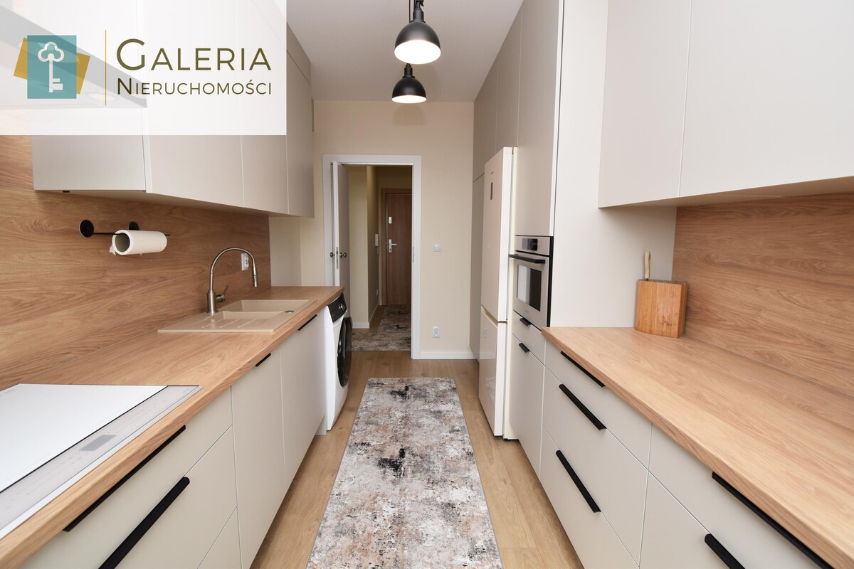 Wnętrze mieszkania zostało zaprojektowane z myślą o wygodzie i elegancji. Wszystkie meble wykonane zostały na wymiar przez stolarza, co gwarantuje wysoką jakość, trwałość i maksymalne wykorzystanie przestrzeni.