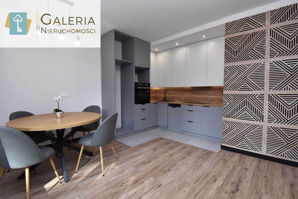 Wnętrze zaprojektowane w nowoczesnym stylu z dbałością o każdy szczegół. Kuchnia w zabudowie została wyposażona w piekarnik i płytę indukcyjną. Przygotowano również miejsce pod zmywarkę, lodówkę w zabudowie i mikrofalówkę.