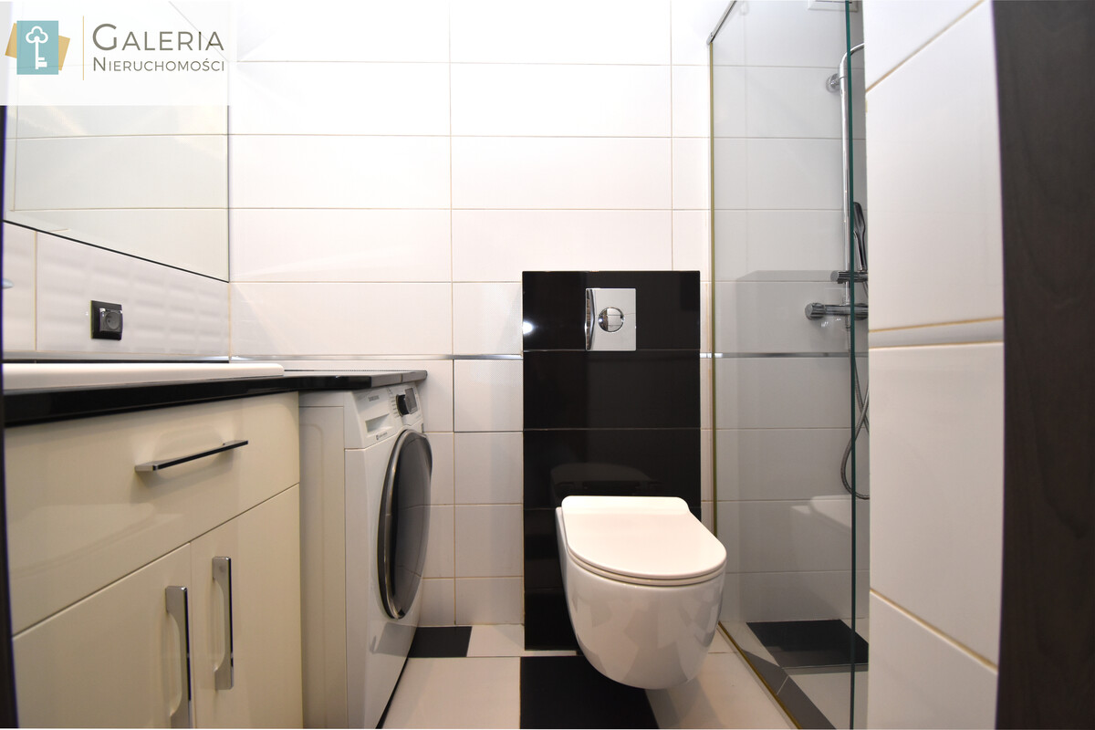 Lokal został wykończony z dbałością o wysoką jakość materiałów, wyposażona jest dodatkowo w pralko-suszarkę.