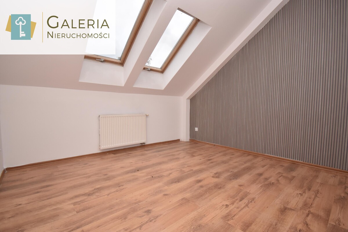 Trzeci pokój wyróżnia się klimatycznymi skosami oraz oknami dachowymi. Znajduje się tu pojemna szafa, a sam charakter wnętrza sprzyja stworzeniu przytulnej sypialni lub pokoju młodzieżowego.