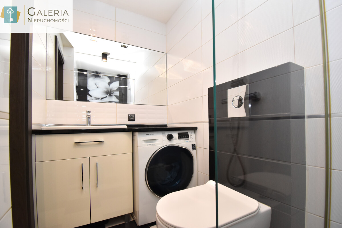 Lokal został wykończony z dbałością o wysoką jakość materiałów, wyposażona jest dodatkowo w pralko-suszarkę.