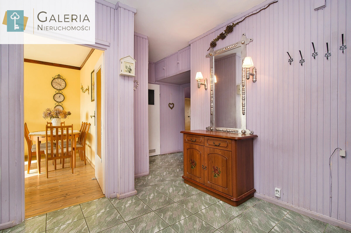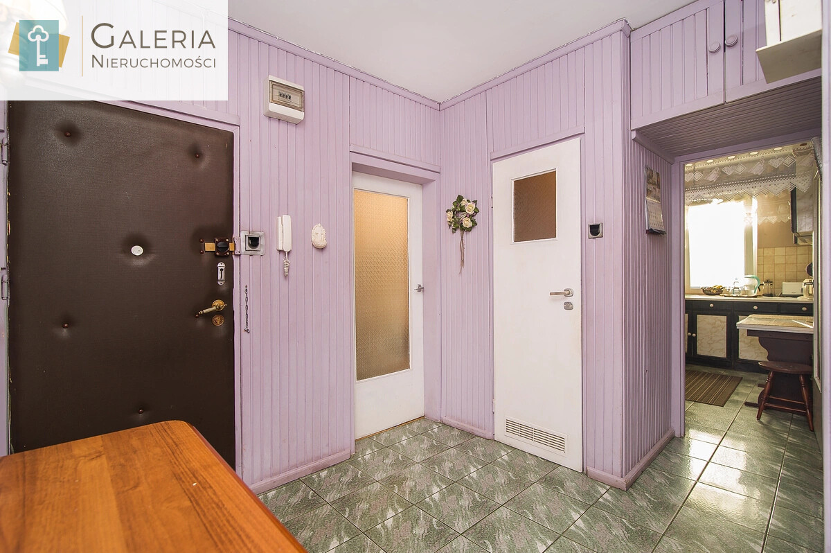 Duży przedpokój prowadzi do wszystkich pomieszczeń pokoi, kuchni, łazienki oraz osobnego WC, co znacząco podnosi wygodę codziennego użytkowania mieszkania.
