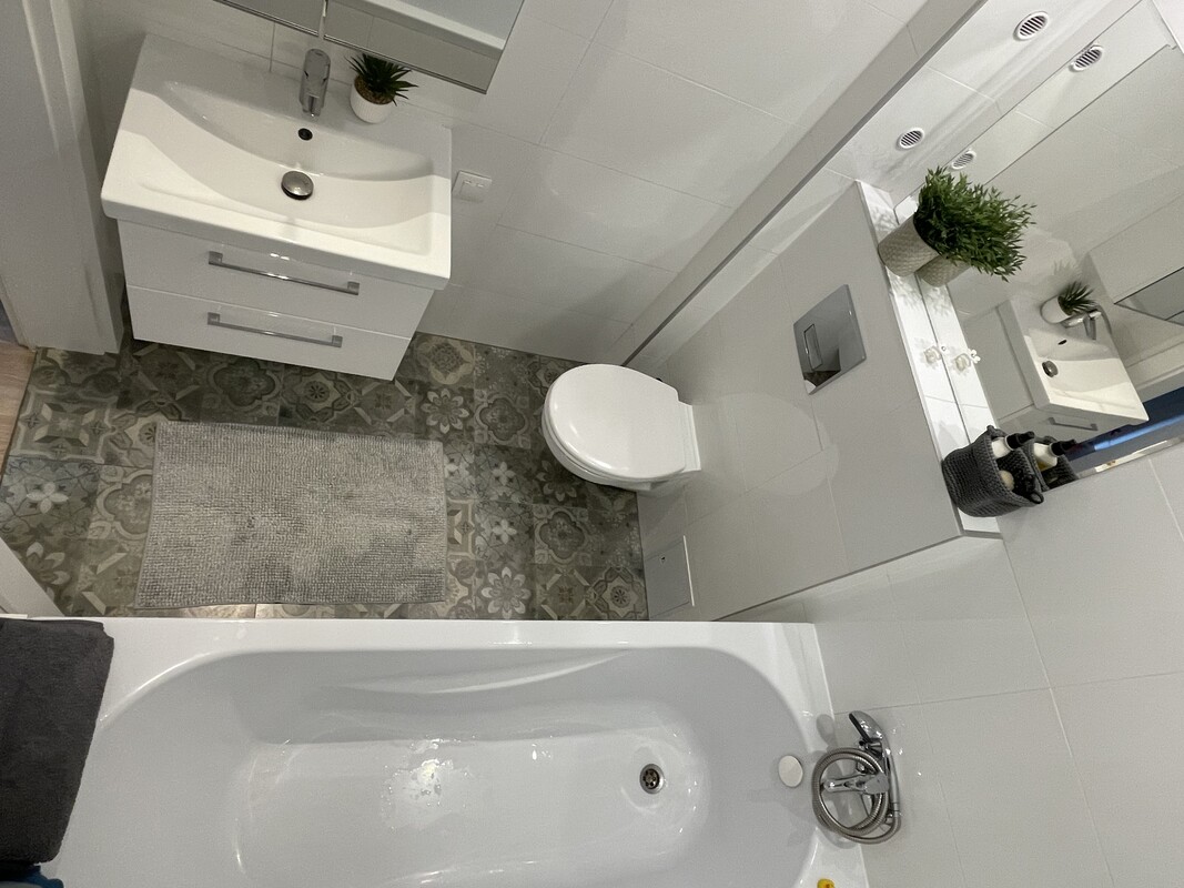Pokój połączony z aneksem kuchennym, przedpokój, łazienka i balkon. Funkcjonalnie urządzona, wygodna, z wyposażeniem. Sprzęt AGD: pralka, zmywarka, płyta grzewcza, mikrofalówka, lodówka, odkurzacz. Łóżko 200x140cm z wysokiej jakości materacem sprężynowym. W przedpokoju szafa, w pokoju miejsce do pracy przy biurku.