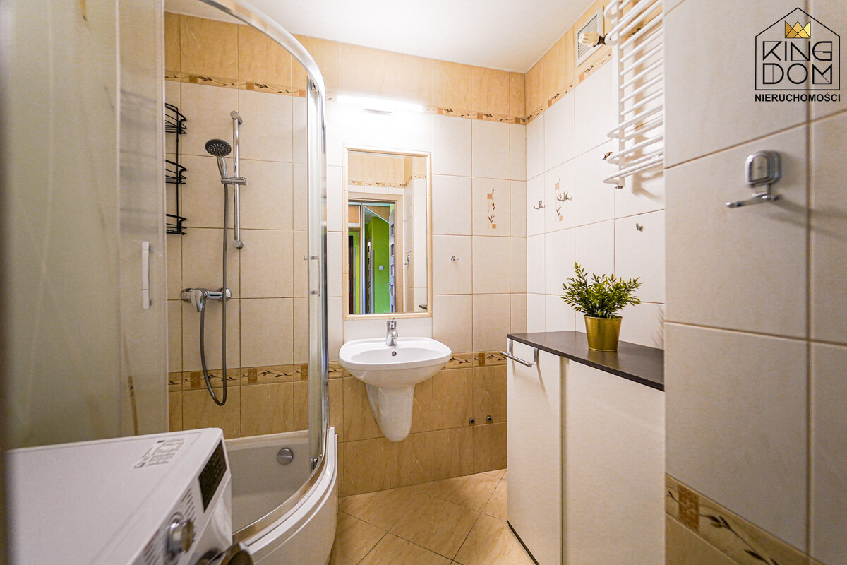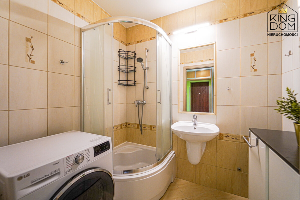 - łazienka z prysznicem i pralką,
