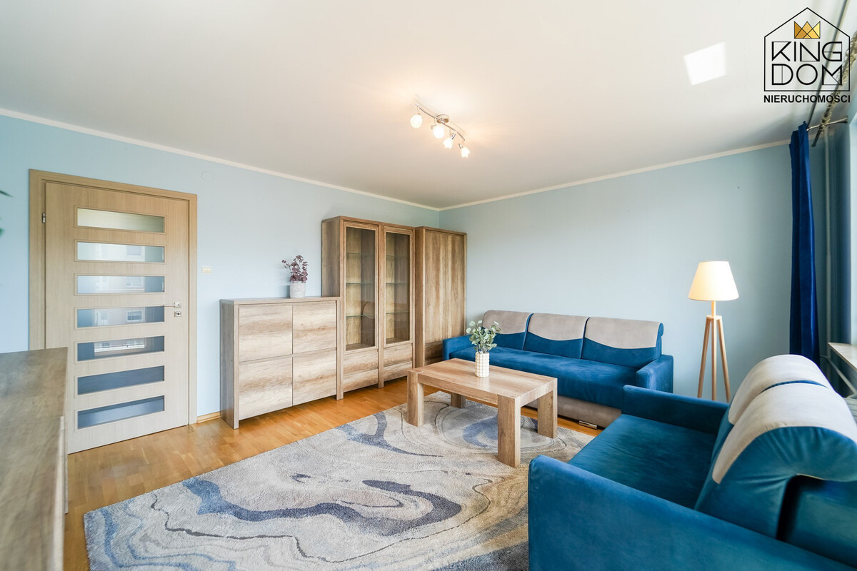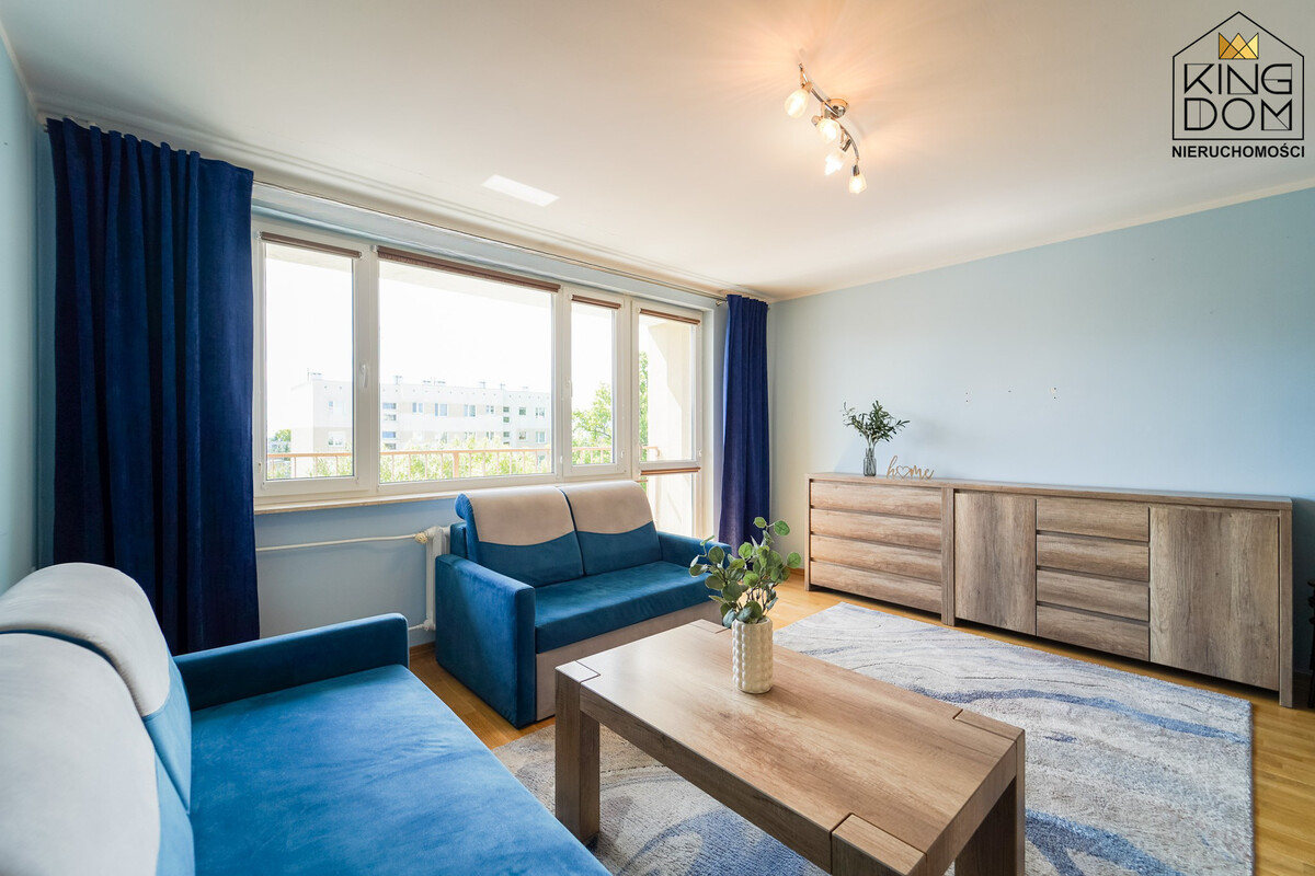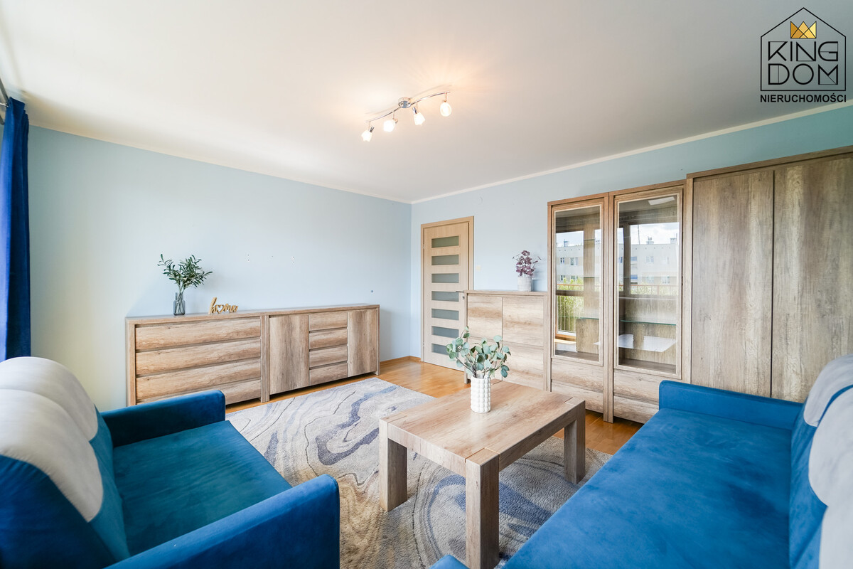 KINGDOM Nieruchomości prezentuje na sprzedaż ustawne 2-pokojowe mieszkanie z dużym balkonem, wyposażone i umeblowane, w świetnej lokalizacji.