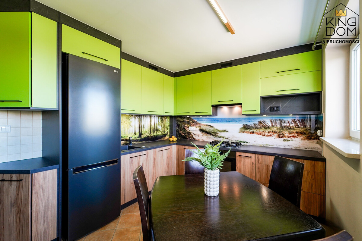 - osobna duża kuchnia ze sprzętami AGD, wydzieloną częścią jadalnianą oraz pojemną zabudową,
