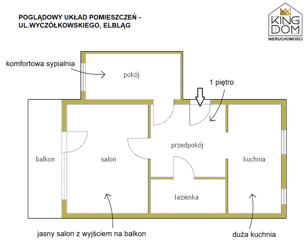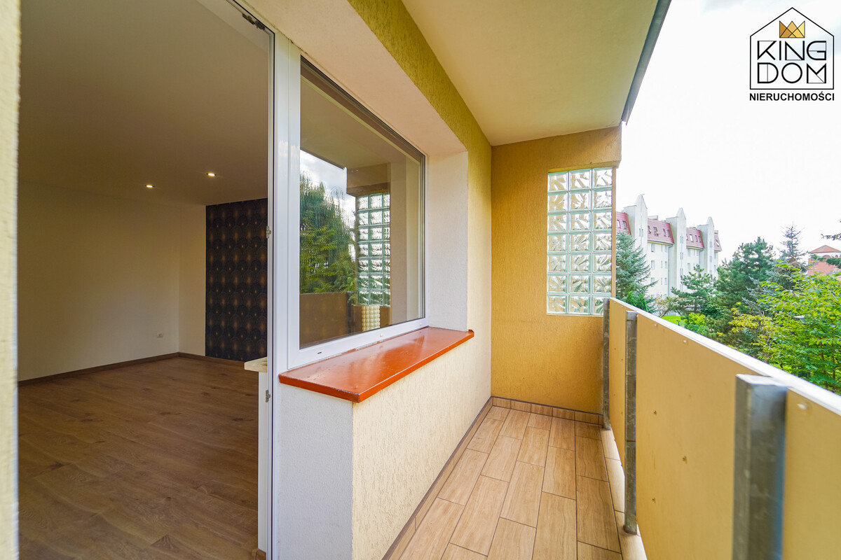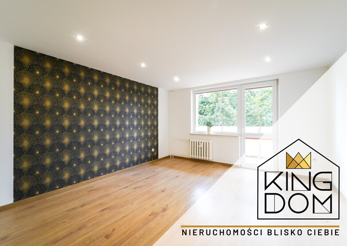 KINGDOM Nieruchomości prezentuje na sprzedaż ustawne 2-pokojowe mieszkanie z balkonem, położone na spokojnym i starannie zagospodarowanym osiedlu.