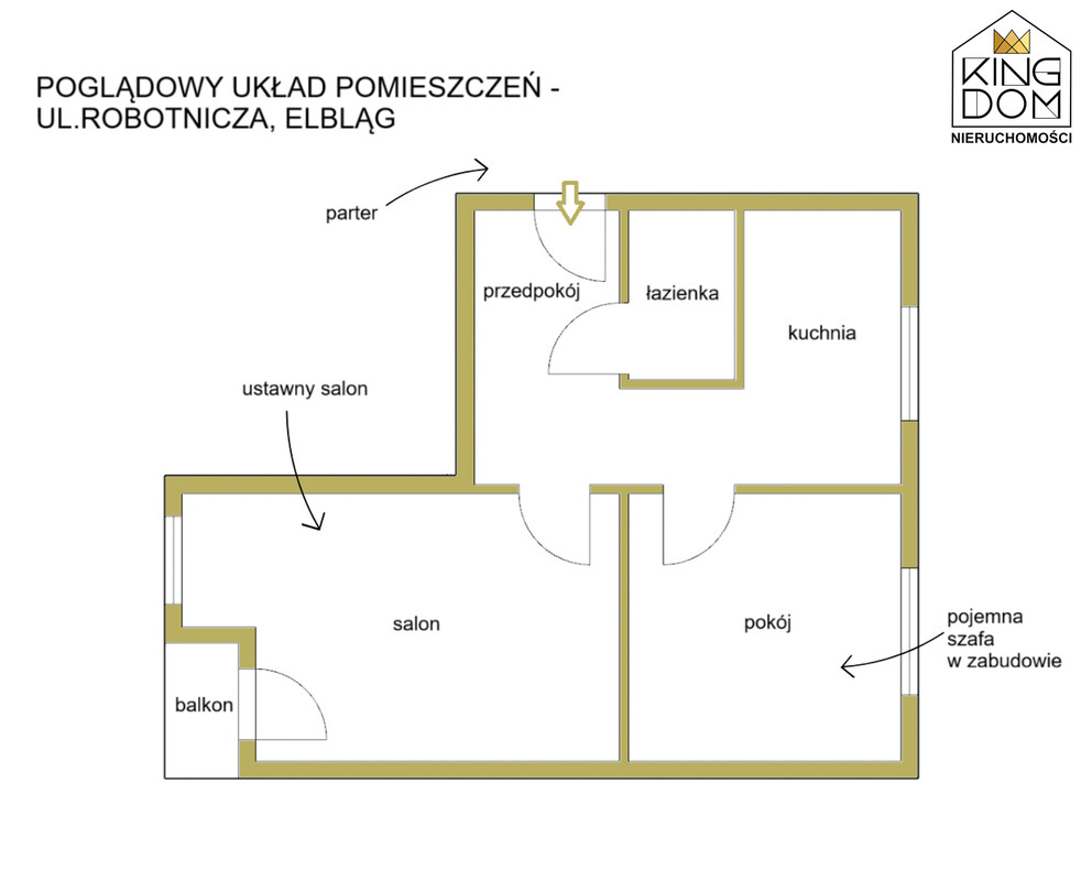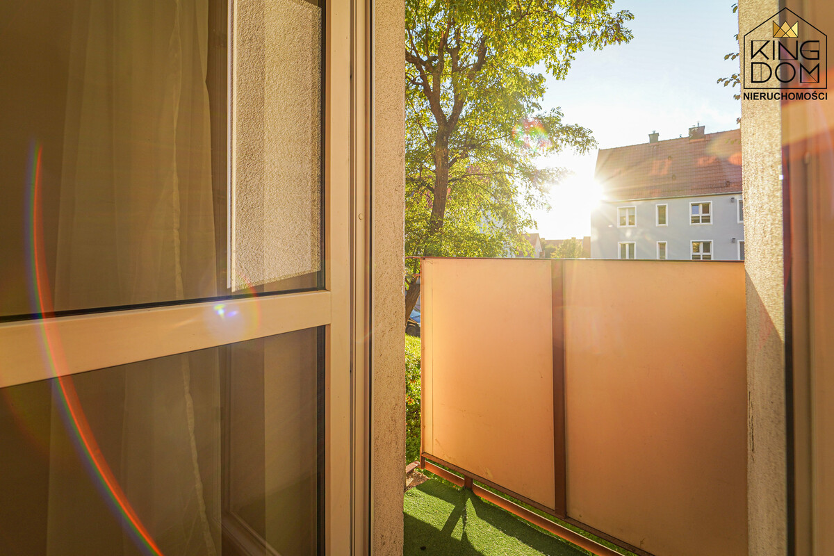 KINGDOM Nieruchomości prezentuje na sprzedaż jasne 2-pokojowe mieszkanie na parterze, z balkonem i dwustronną wystawą okien, w bardzo dobrej lokalizacji.