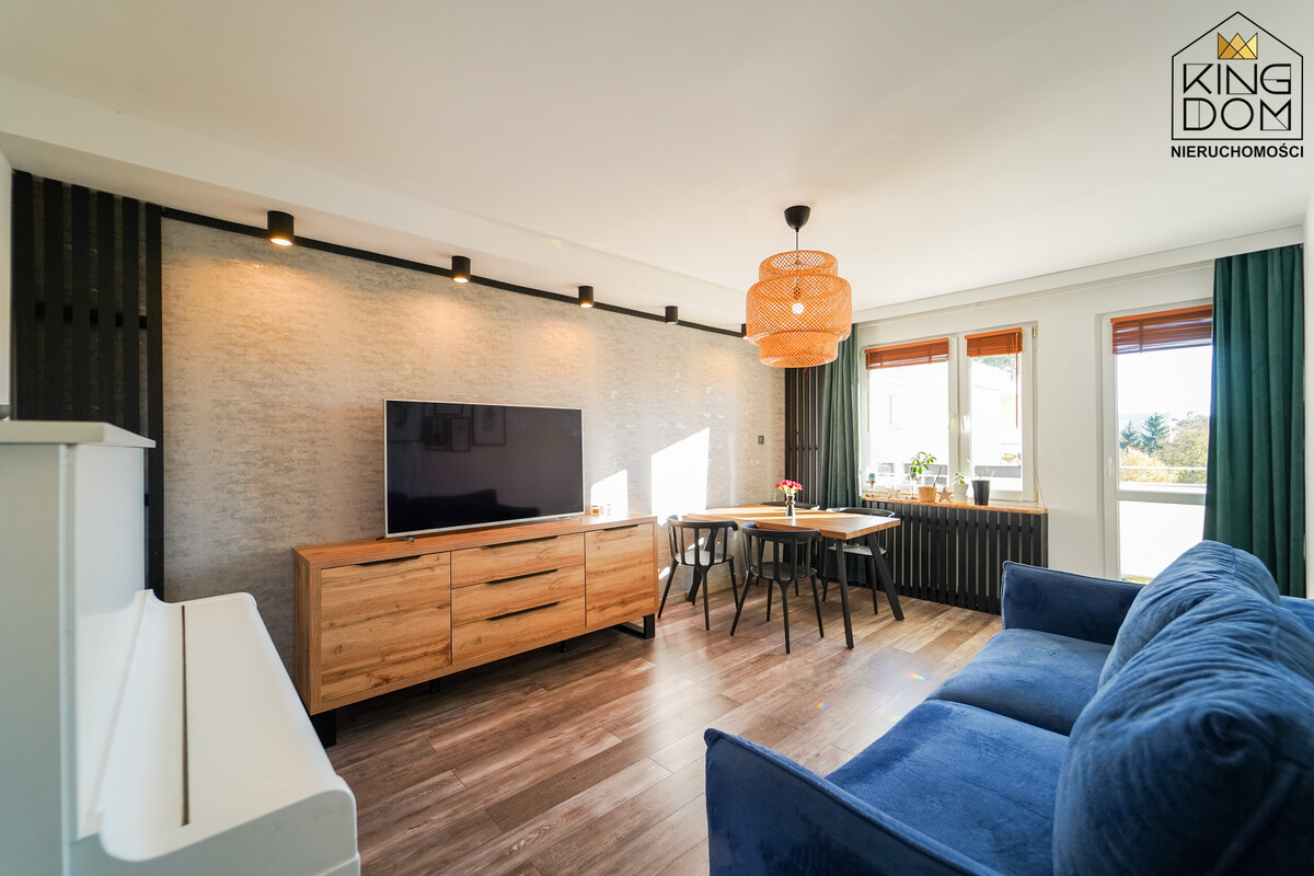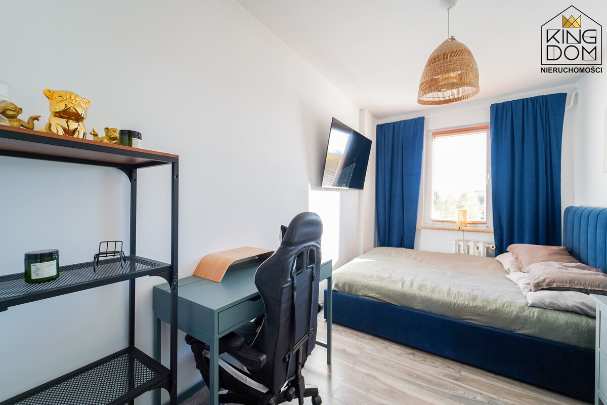 KINGDOM Nieruchomości prezentuje na sprzedaż 3-pokojowe mieszkanie z balkonem, wyposażone i umeblowane, w bliskim sąsiedztwie Parku Modrzewia. To idealne miejsce do życia dla rodzin ceniących spokój i wygodę.