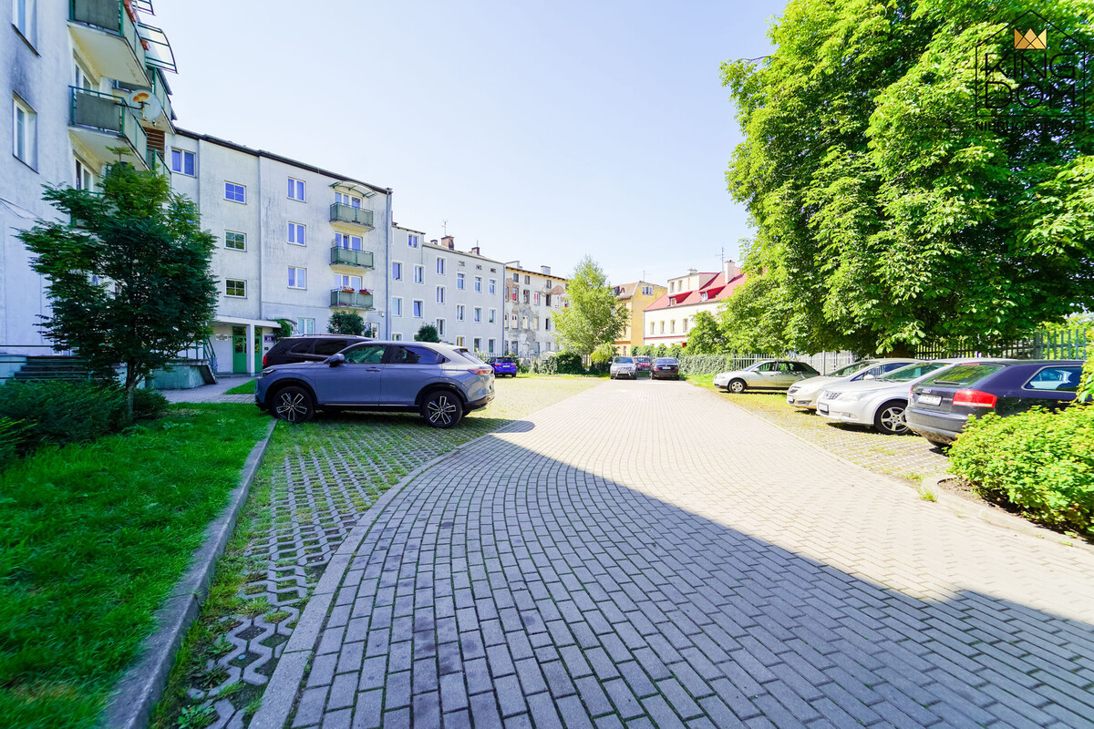 Parking dla mieszkańców znajduje się za budynkiem i jest zabezpieczony szlabanem.
