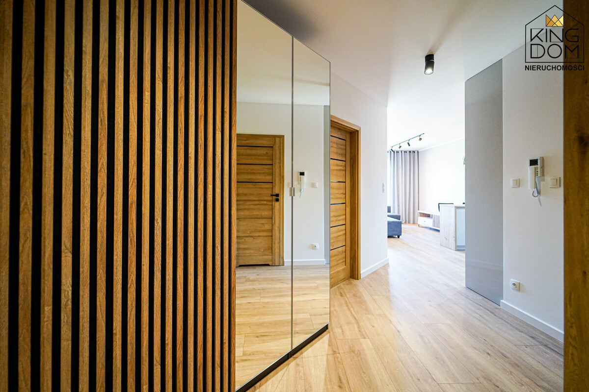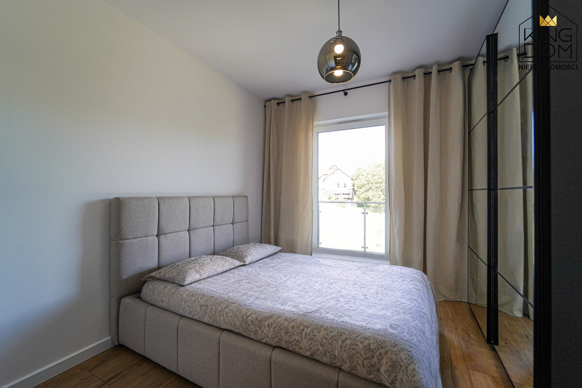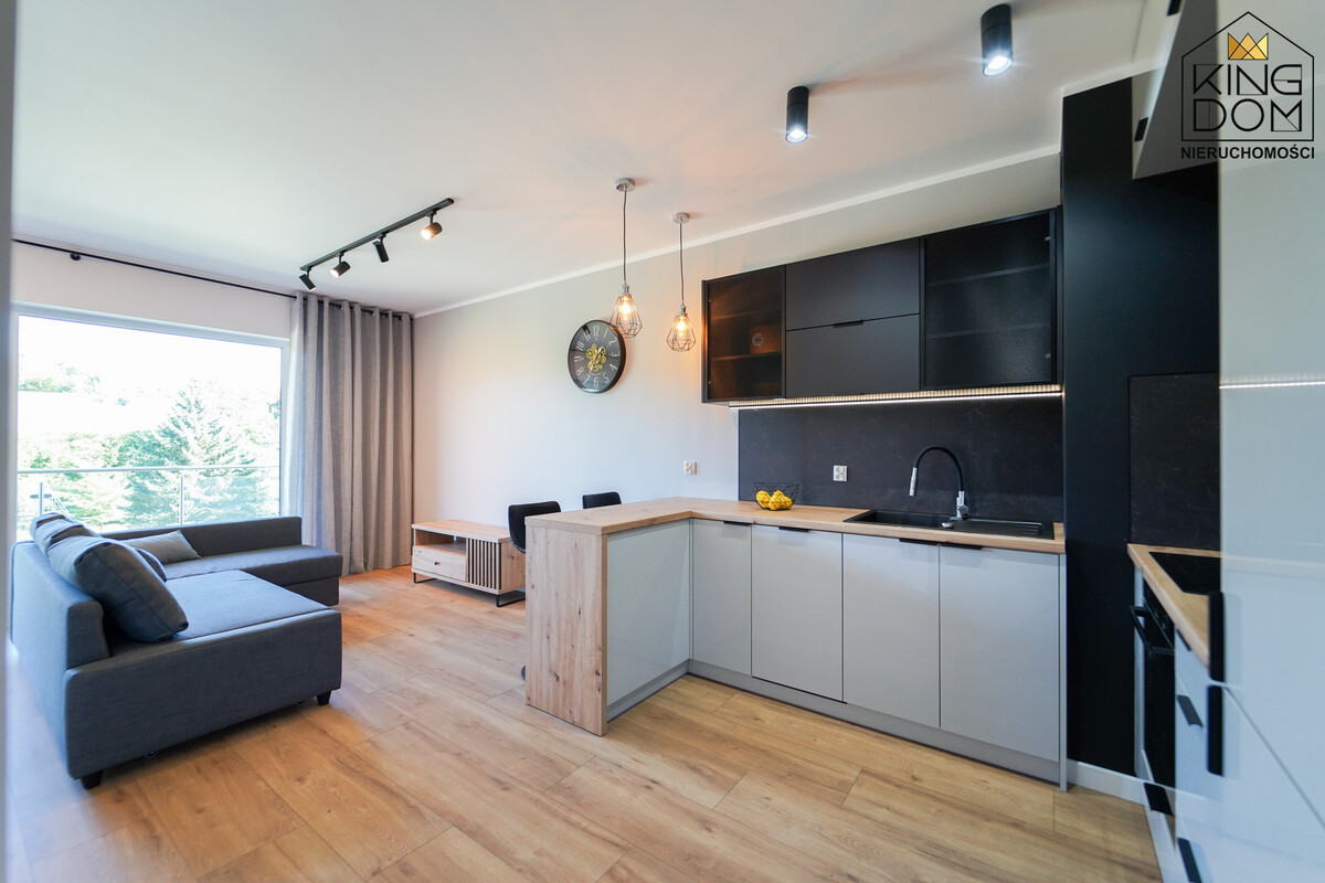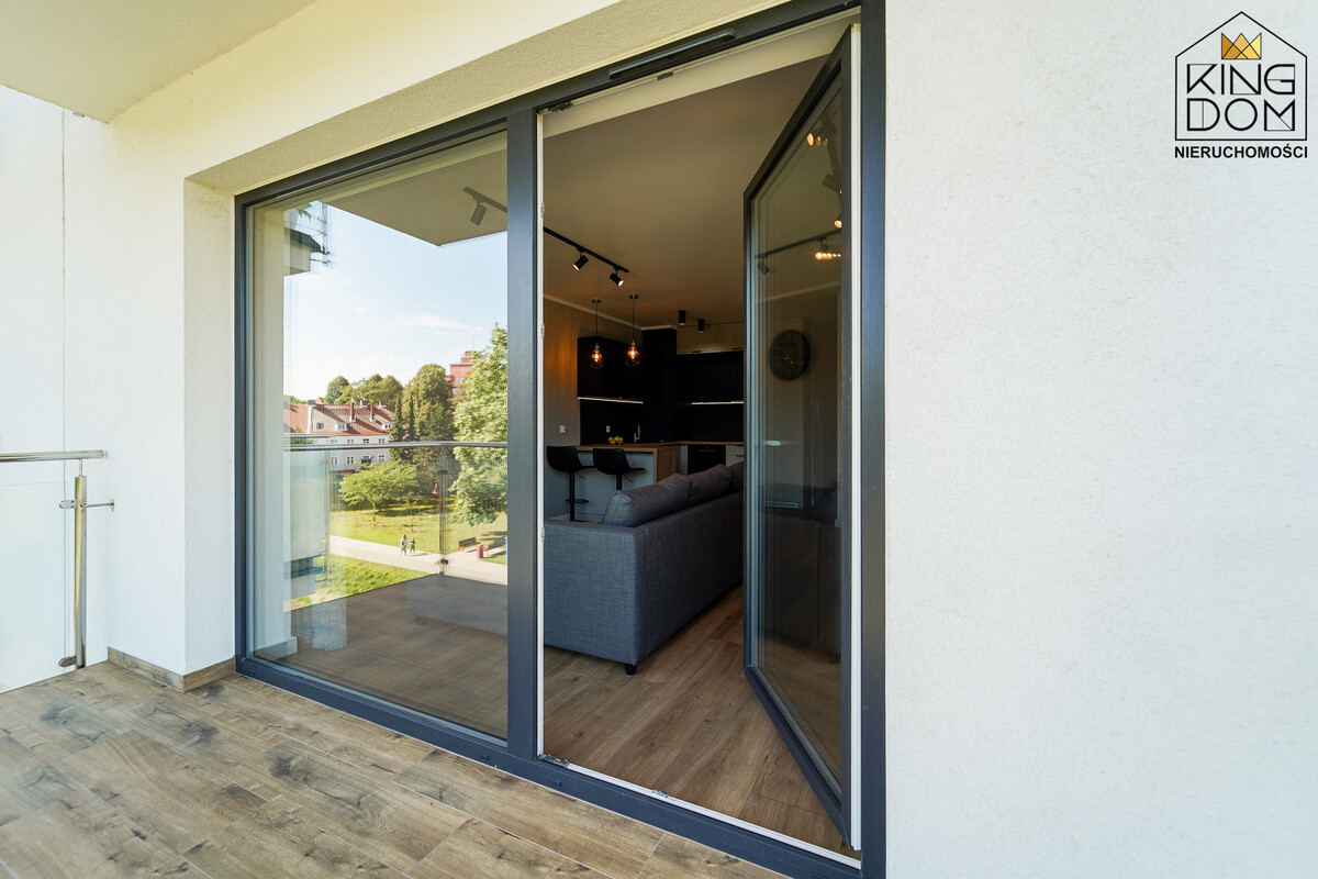 KINGDOM Nieruchomości prezentuje na wynajem komfortowe, nowocześnie urządzone 2-pokojowe mieszkanie z dwoma balkonami i miejscem w hali garażowej. To wyjątkowe miejsce, które łączy nowoczesną architekturę z sąsiedztwem zieleni, idealne na spacery, jogging czy pikniki na świeżym powietrzu.