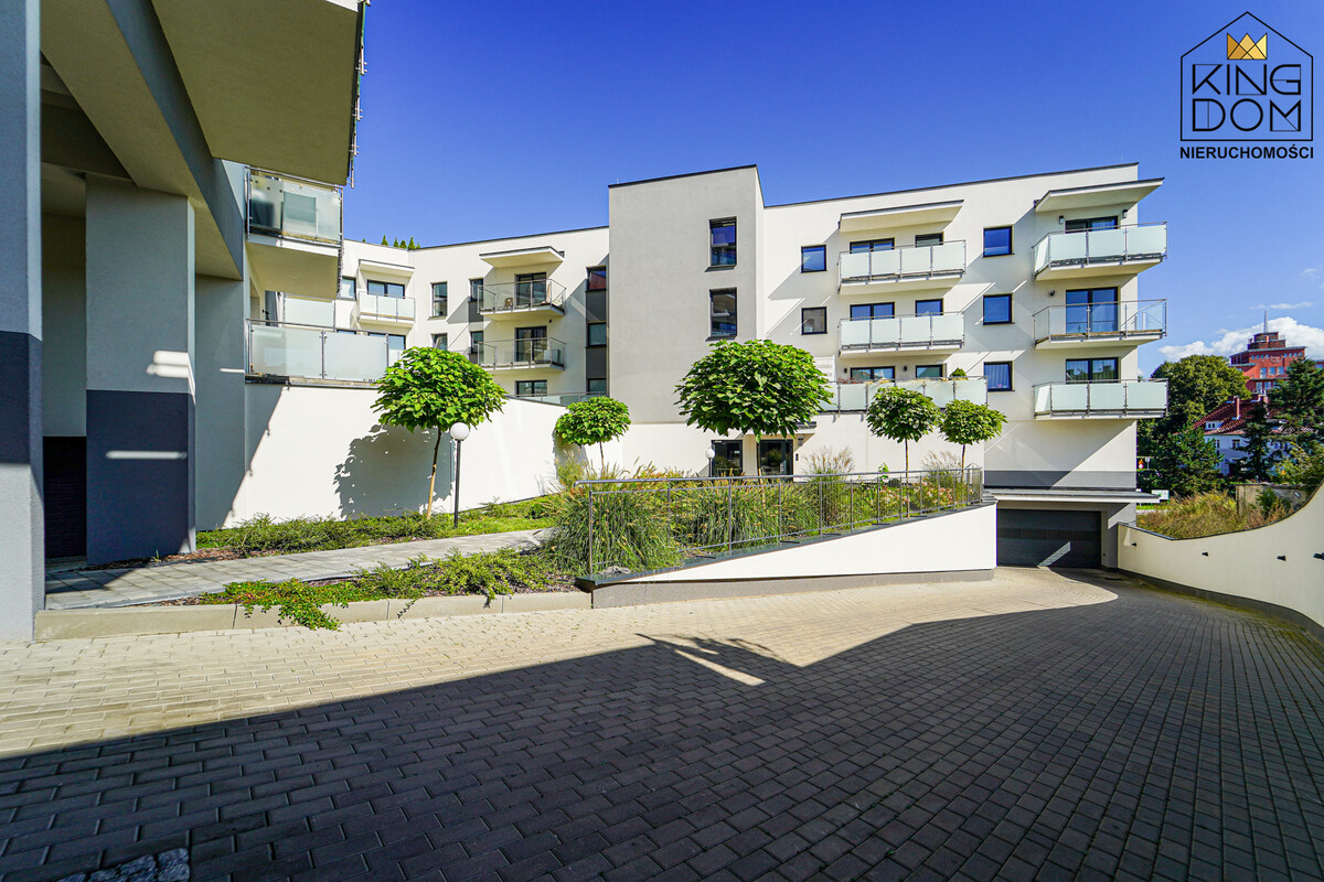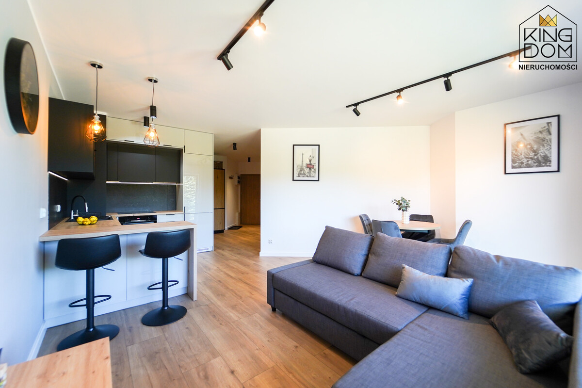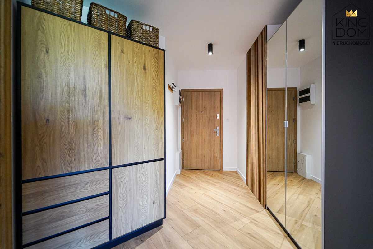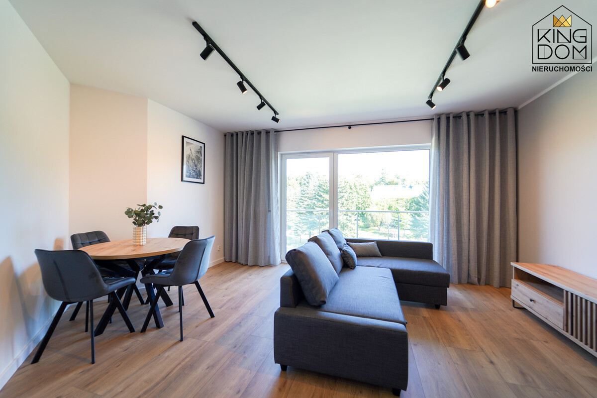 KINGDOM Nieruchomości prezentuje na wynajem komfortowe, nowocześnie urządzone 2-pokojowe mieszkanie z dwoma balkonami i miejscem w hali garażowej. To wyjątkowe miejsce, które łączy nowoczesną architekturę z sąsiedztwem zieleni, idealne na spacery, jogging czy pikniki na świeżym powietrzu.