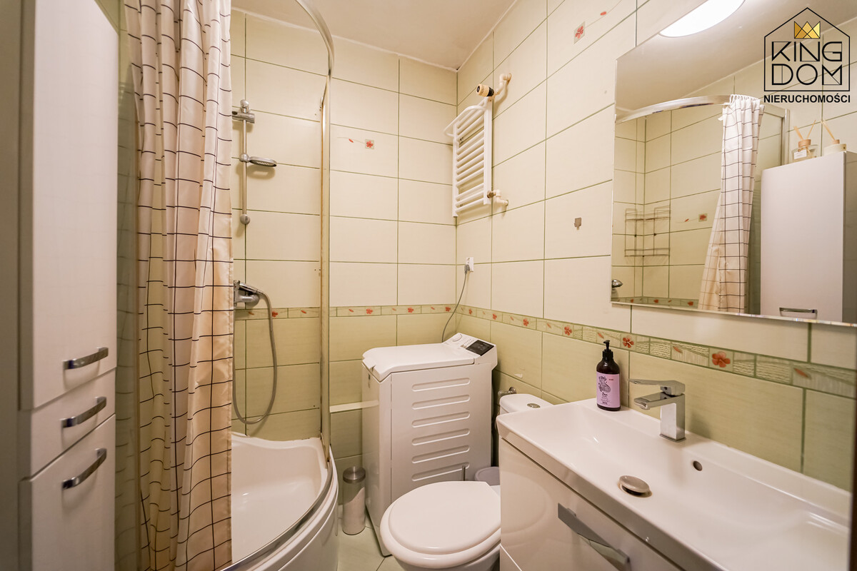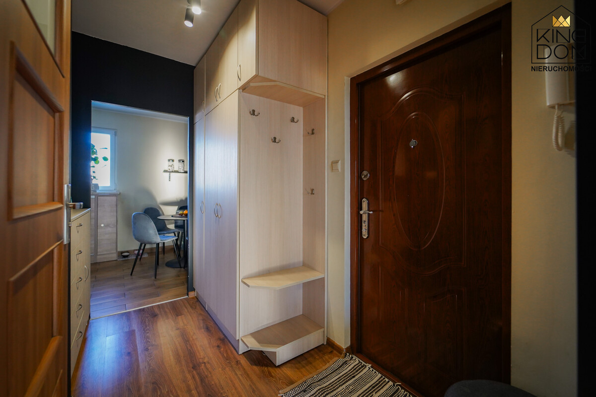 KINGDOM Nieruchomości prezentuje na sprzedaż gotową do zamieszkania kawalerkę z możliwością przearanżowania na dwupokojowe mieszkanie. To idealna propozycja dla osób szukających mieszkania na start, par, singli, jak również jako pewna inwestycja pod wynajem.