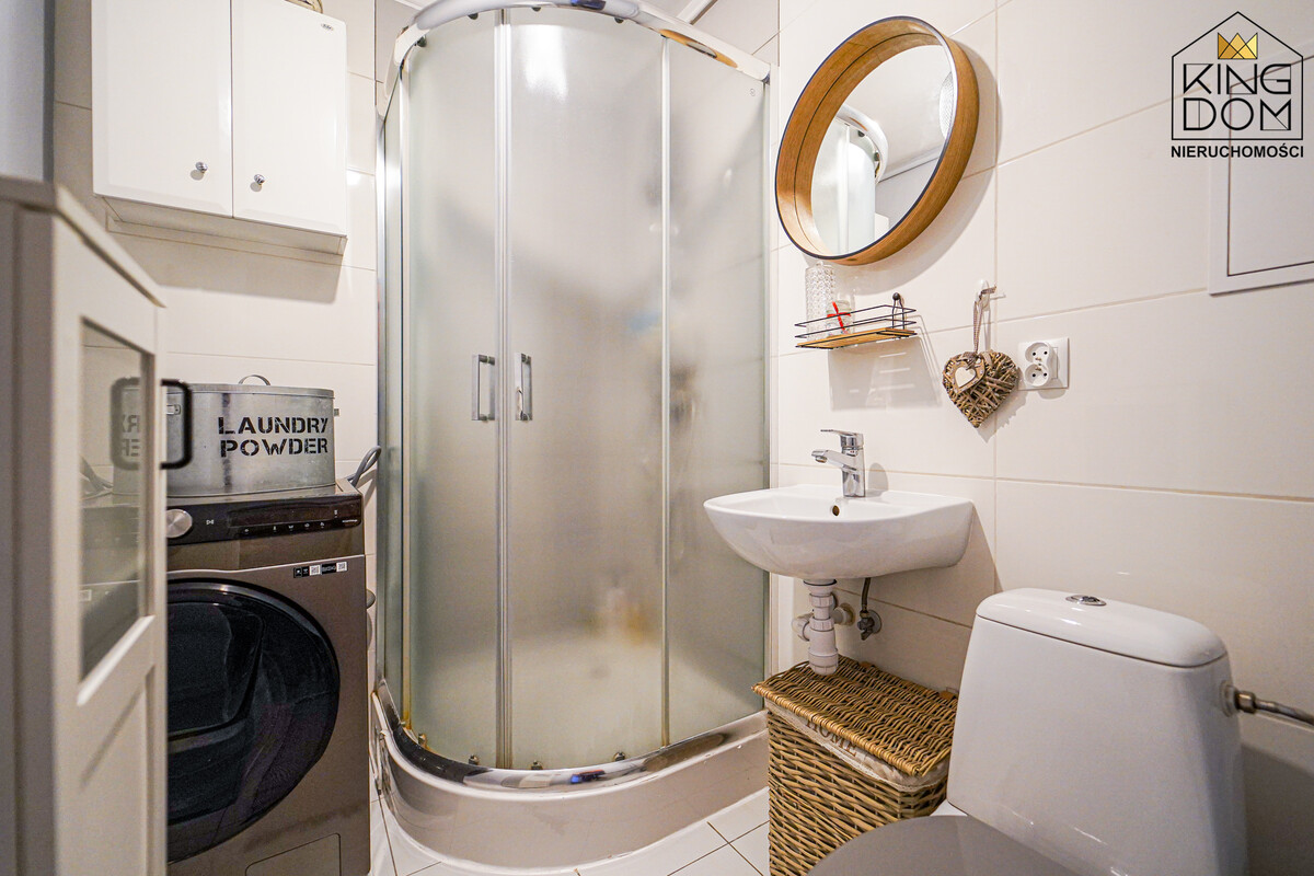 - łazienka z WC, prysznicem oraz pralką,