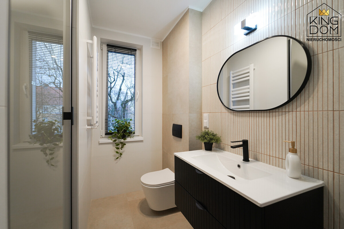 Lokal przeszedł gruntowny remont, podczas którego wymieniono zarówno instalację hydrauliczną, jak i elektryczną, co zapewnia nie tylko komfort, ale również bezpieczeństwo użytkowania przez wiele lat. W kuchni zainstalowano nowoczesną zabudowę w eleganckiej kolorystyce orzecha i kaszmiru, która łączy funkcjonalność z estetyką. Elegancka armatura w łazience i stylowe elementy wyposażenia cieszą oczy i wprowadzają klimat, który sprzyja relaksowi.