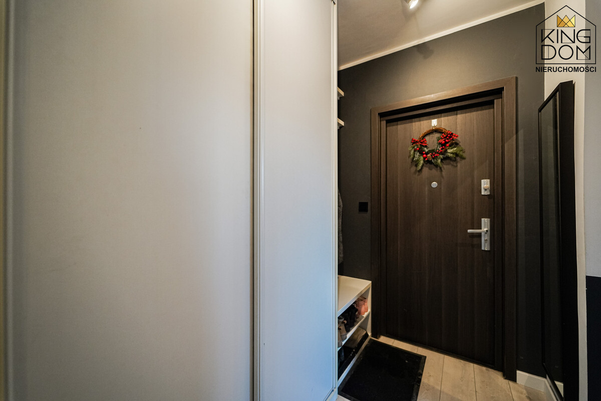 - przedpokój z dwiema szafami w zabudowie, oferującymi dodatkową przestrzeń do przechowywania.