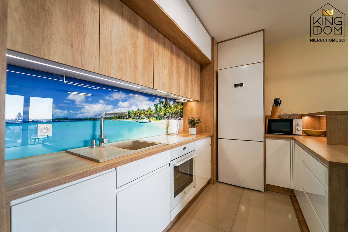 W każdym pomieszczeniu zastosowano regulowane oświetlenie z możliwością zmiany natężenia światła, pozwalające dopasować atmosferę od jasnego światła dziennego po nastrojowe, wieczorne. Lokal jest w pełni wyposażony i gotowy do wprowadzenia, bez konieczności ponoszenia dodatkowych nakładów finansowych. Nowoczesna kuchnia w zabudowie została wyposażona w wysokiej jakości sprzęty AGD.