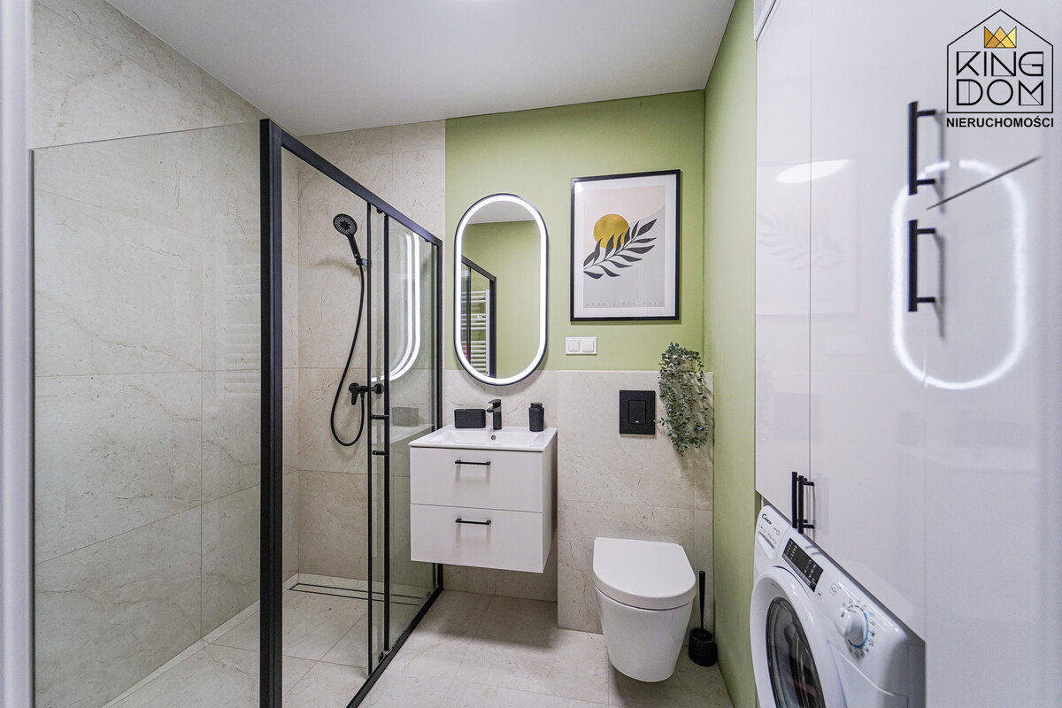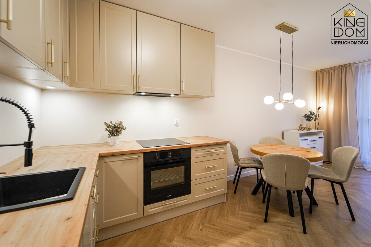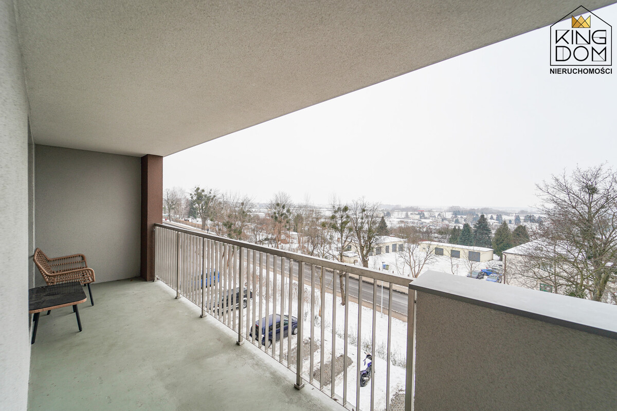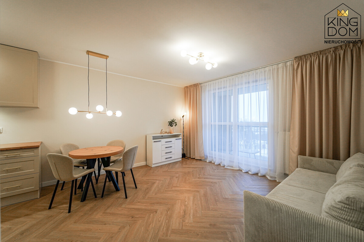 KINGDOM Nieruchomości prezentuje na wynajem nowocześnie urządzone, 2-pokojowe mieszkanie z dużym balkonem.