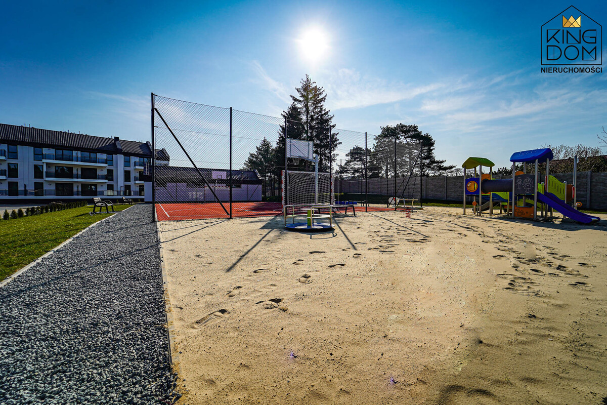 Cały kompleks jest atrakcyjnie zagospodarowany, ogrodzony i strzeżony, a dodatkowym atutem jest bezpośrednie sąsiedztwo lasu. Na terenie osiedla dostępny jest plac zabaw, boisko wielofunkcyjne, zewnętrzna siłownia oraz wiaty grillowe. Nieruchomość stanowi odrębną własność i ma założoną księgę wieczystą.