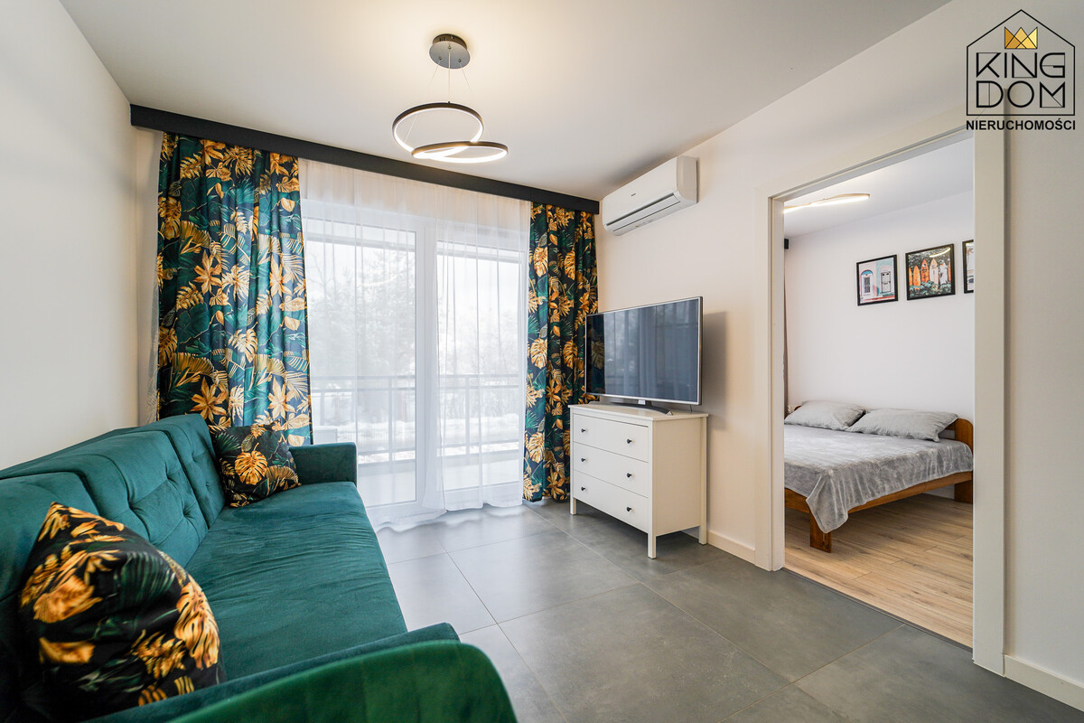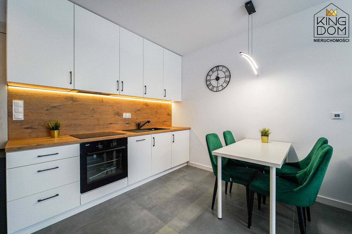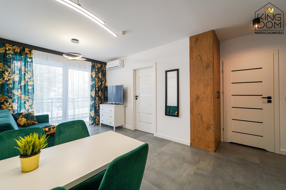 Mieszkanie jest w pełni umeblowane i wyposażone, dzięki czemu jest gotowe do zamieszkania od zaraz, bez konieczności ponoszenia dodatkowych nakładów finansowych. Funkcjonalnie zaprojektowana przestrzeń dzienna łączy komfort z estetyką, zapewniając wygodę zarówno na co dzień, jak i podczas wypoczynku.