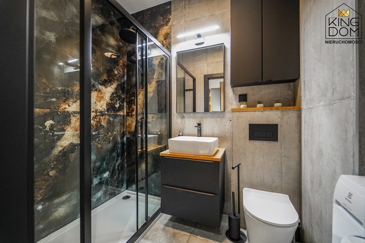 - gustownie urządzona i dobrze doświetlona łazienka z nowoczesnym prysznicem i WC,