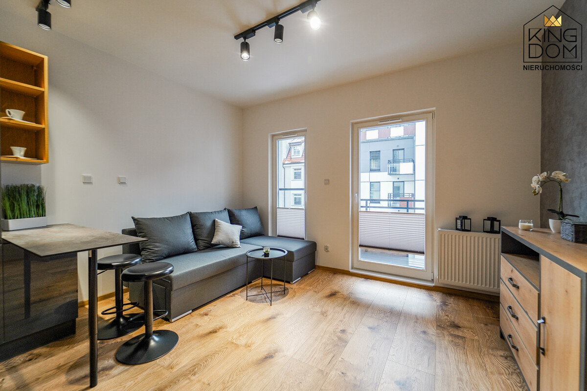 KINGDOM Nieruchomości prezentuje na wynajem nowoczesne, w pełni umeblowane i wyposażone mieszkanie, w nowej kamienicy z windą, na Starym Mieście.