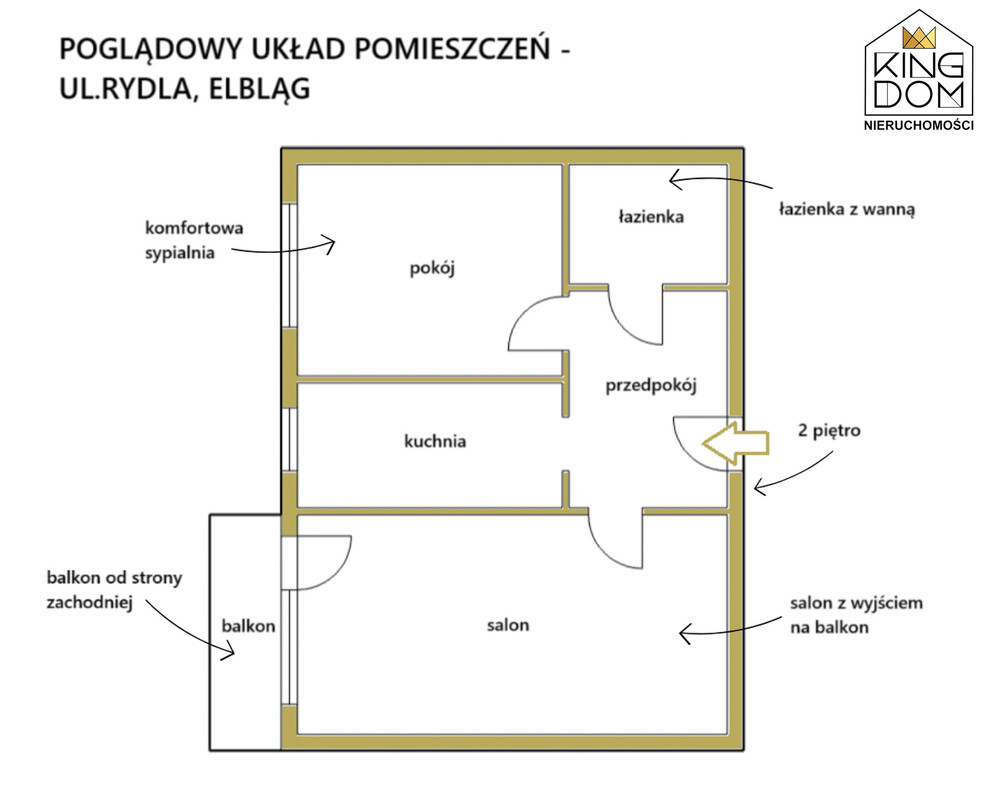 KINGDOM Nieruchomości prezentuje na wynajem 2-pokojowe mieszkanie z balkonem, w pełni umeblowane i wyposażone, położone na 2 piętrze, w jednej z najbardziej pożądanych lokalizacji w Elblągu, na dzielnicy Kamionka.
