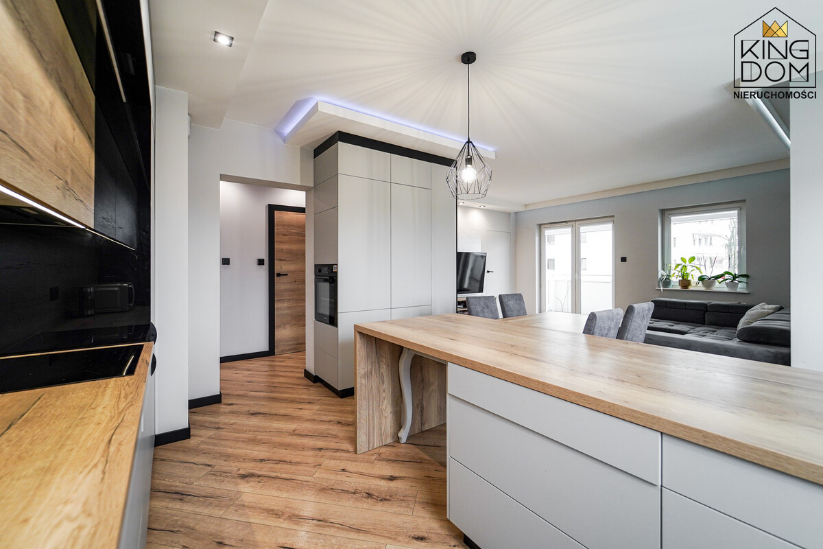 KINGDOM Nieruchomości prezentuje na sprzedaż nowocześnie urządzone, przestronne 3-pokojowe mieszkanie z dużym balkonem, położone na pierwszym piętrze nowoczesnego budynku, w bardzo dobrej lokalizacji. To propozycja dla osób, którzy cenią gotowe rozwiązania, doskonale doświetlone wnętrza oraz najwyższy komfort życia.