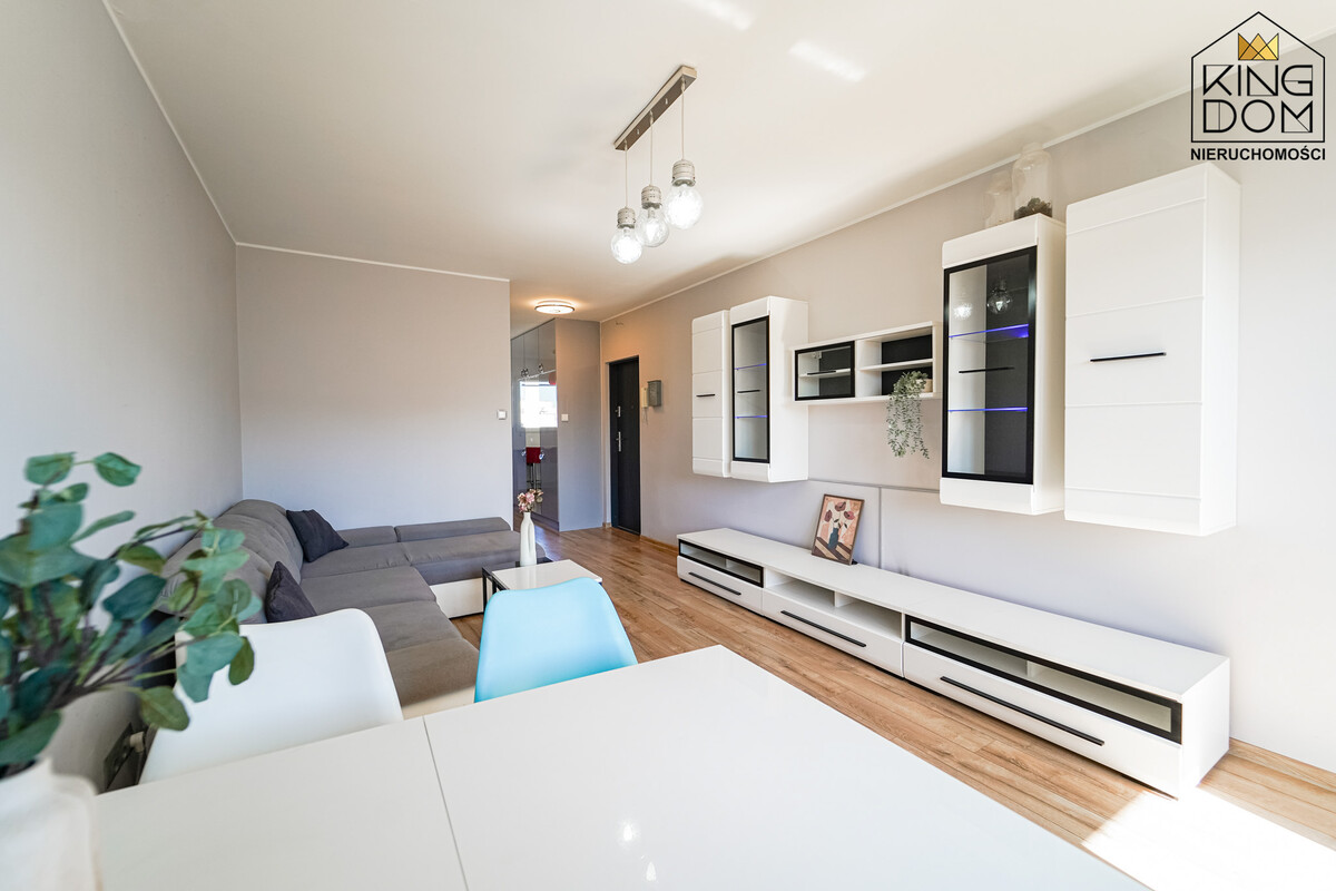KINGDOM Nieruchomości prezentuje na sprzedaż wyposażoną i umeblowaną kawalerkę z dużym balkonem. To idealna propozycja dla osób szukających mieszkania na start, par, singli, jak również jako pewna inwestycja pod wynajem.