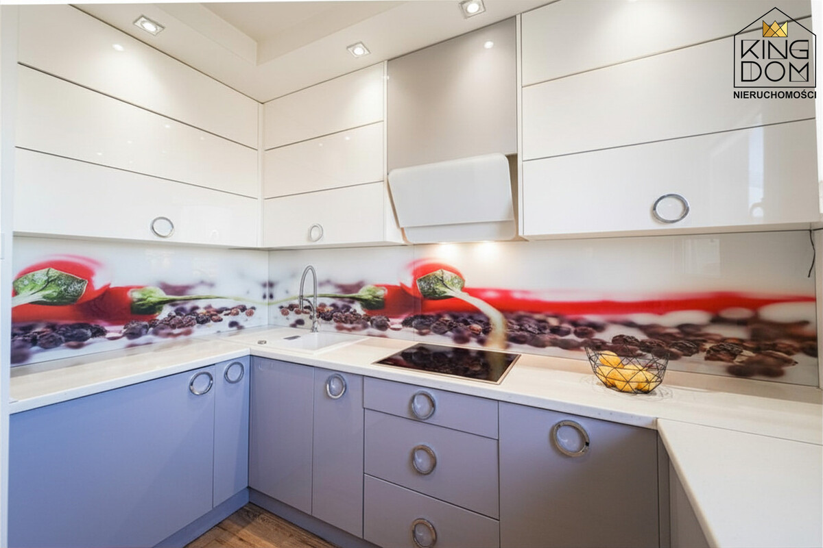 - osobna, jasna kuchnia w zabudowie ze sprzętami AGD (lodówka, piekarnik, płyta indukcyjna, mikrofala, okap oraz pralka),
