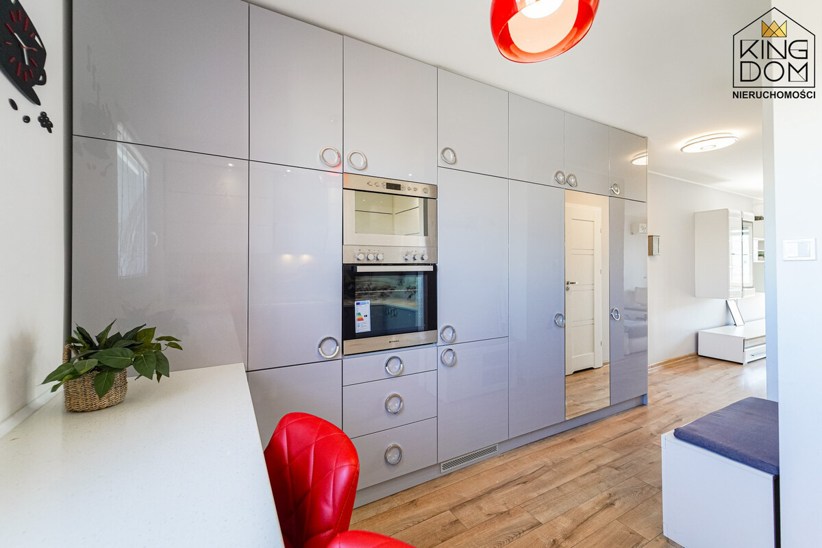 Lokal sprzedawany jest z wyposażeniem i umeblowaniem widocznym na zdjęciach, dzięki czemu nie wymaga dodatkowych nakładów finansowych. W salonie zamontowano klimatyzację, która zapewnia komfort w upalne dni. Kuchnia została zaprojektowana z myślą o maksymalnej wygodzie, oferując wyjątkowo dużo miejsca do przechowywania dzięki licznym, pojemnym szafkom.