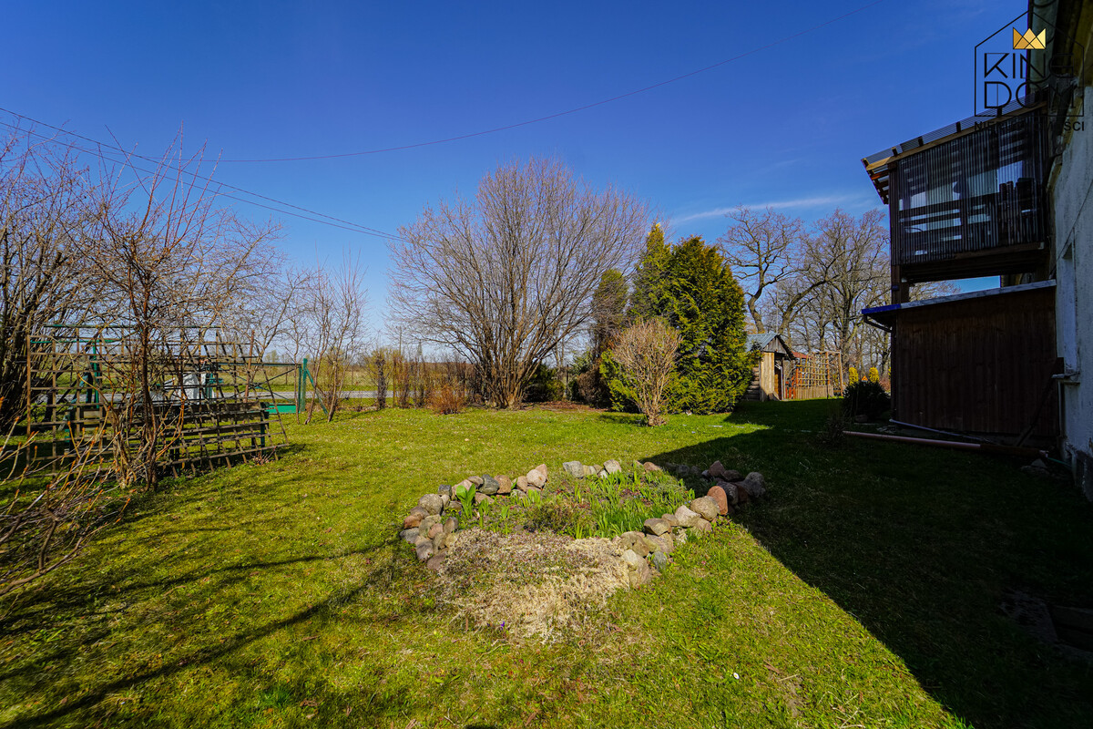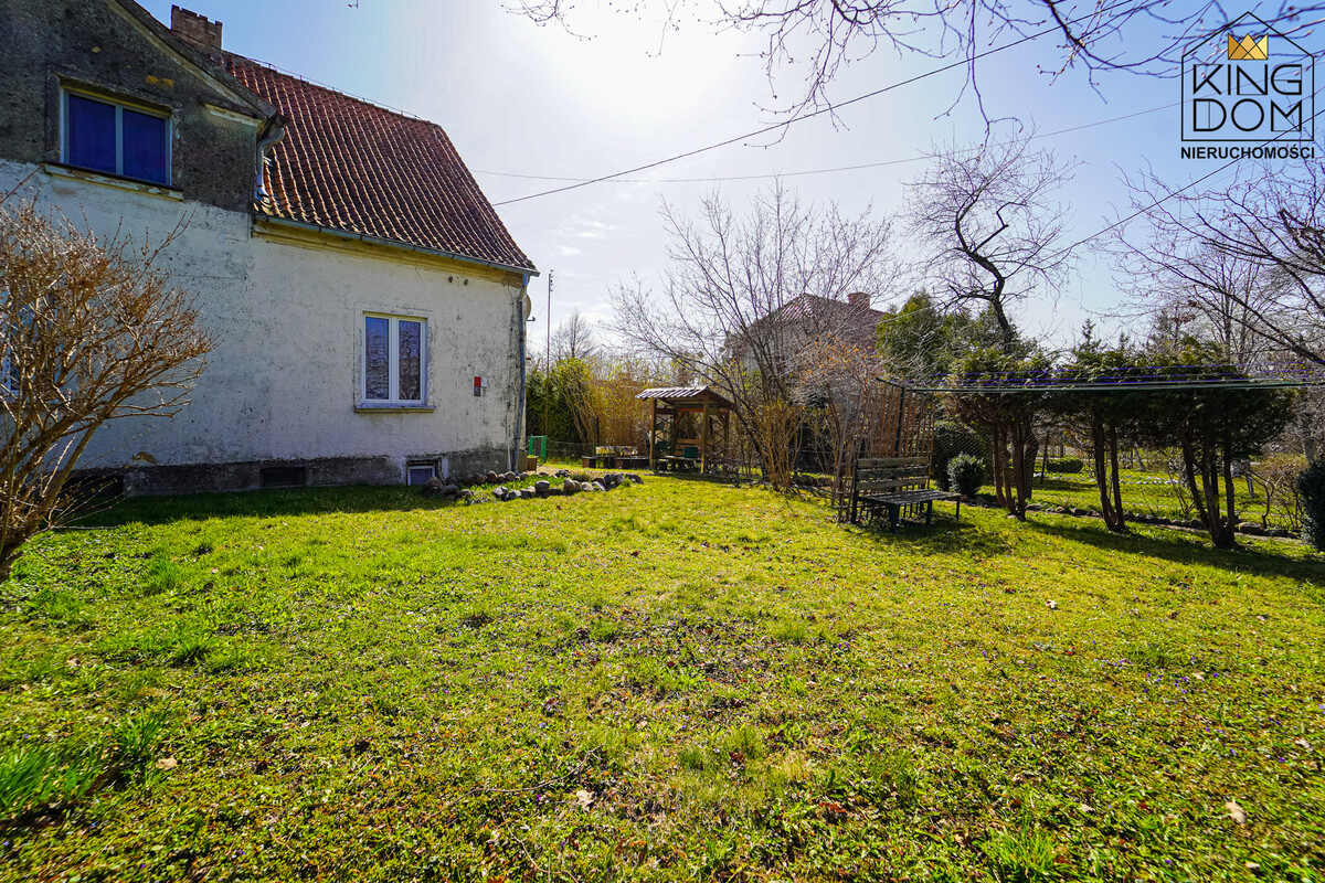 Budynek posadowiony jest na dużej działce, która jest wspólnie użytkowana przez 4 rodziny. Dla zachowania komfortu, każda z rodzin posiada wydzieloną swoją część terenu. Do mieszkania wydzielona jest duża, ogrodzona część działki, z której obecni właściciele aktywnie korzystają. Na terenie posesji przygotowano również specjalne miejsce pod wiatę samochodową.