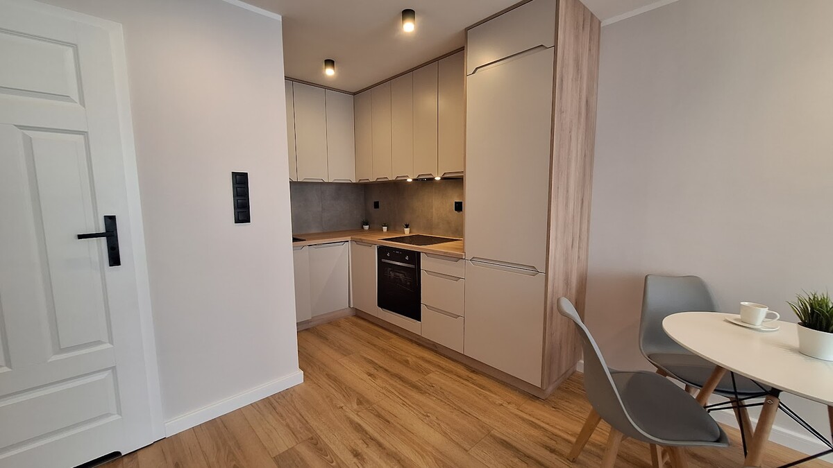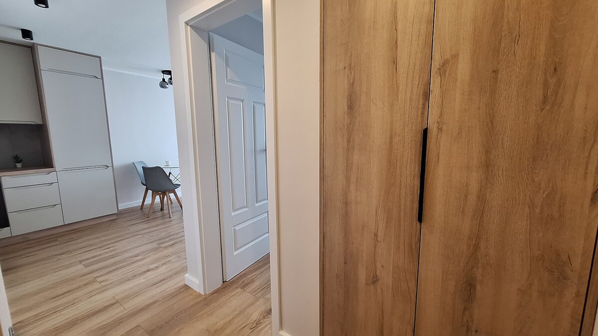 Lokal składa się z dużego salonu połączonego z pół otwartą kuchnią, niezależnej sypialni, łazienki z wc i przedpokoju z szafą.