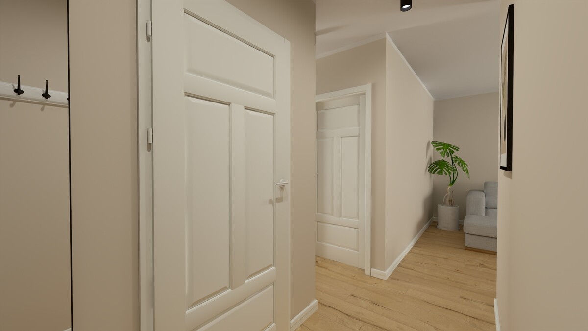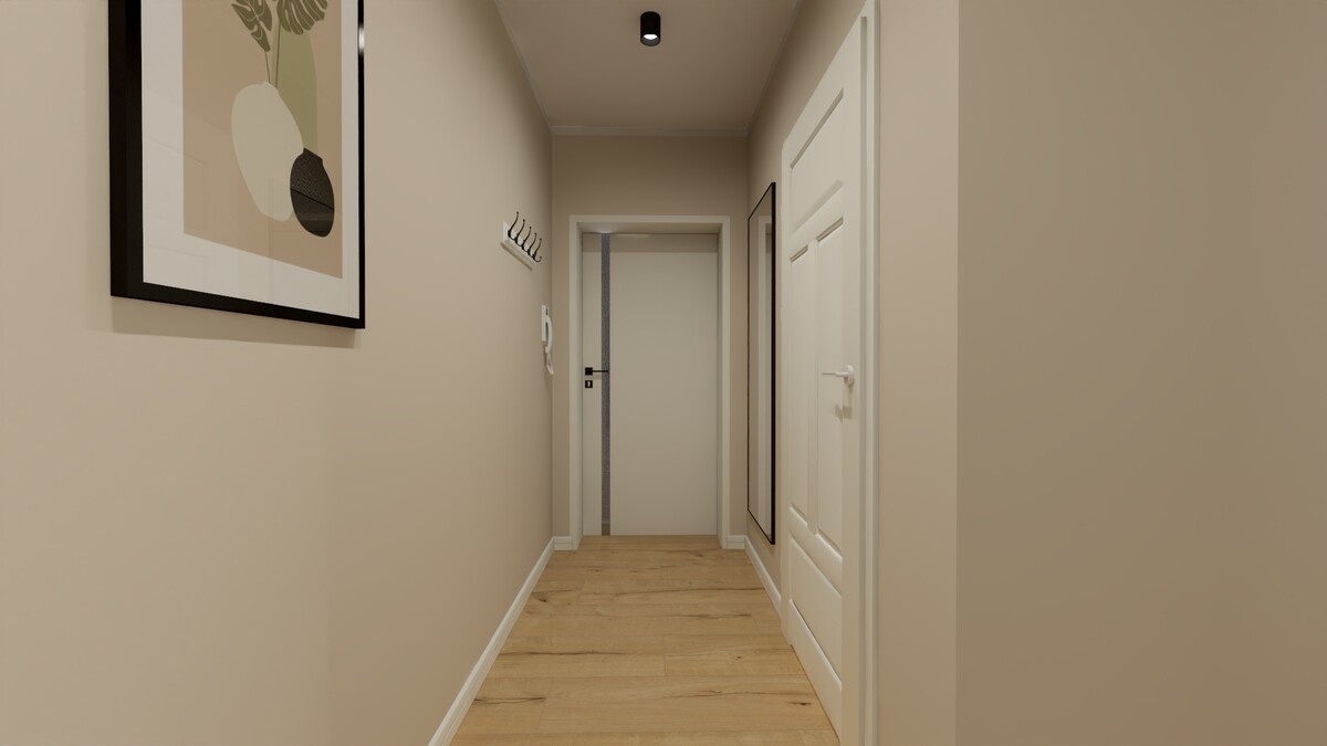 Lokal składa się z salonu z oknem balkonowym, odrębnej sypialni, kuchni, łazienki z wc i przedpokoju.