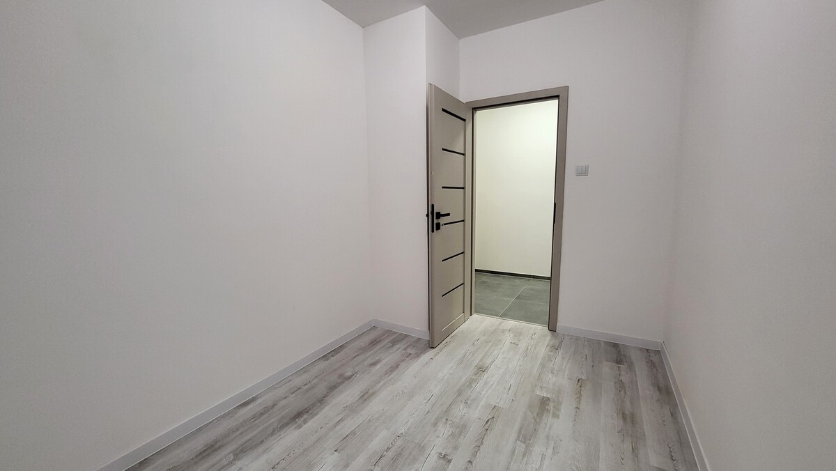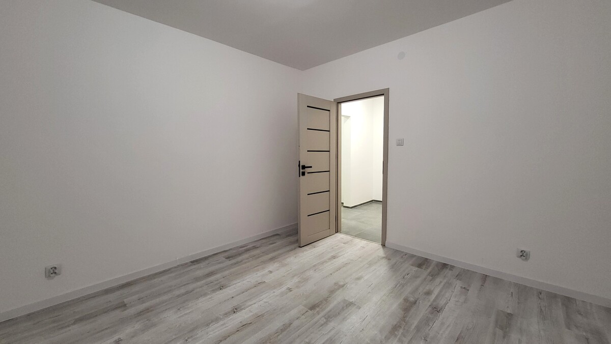 Mieszkanie 3 pokojowe o powierzchni 49,7 m2, położone na parterze w bloku. Lokal składa się z salonu z aneksem kuchennym, 2 sypialni, łazienki z wc i przedpokoju. Z salonu jest wyjście na balkon na stronę zachodnią. Do mieszkania przynależy także piwnica. Lokal po generalnym remoncie, gotowy do zamieszkania. Nowa instalacja elektryczna, hydrauliczna, łazienka, kuchnia z zabudową, tynki, podłogi, drzwi.