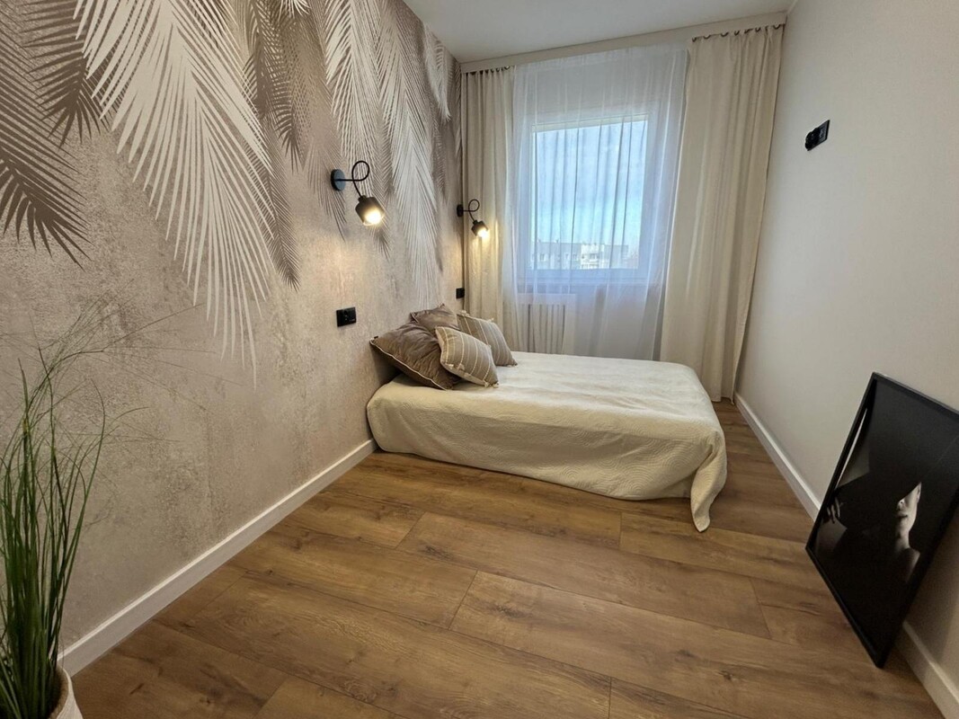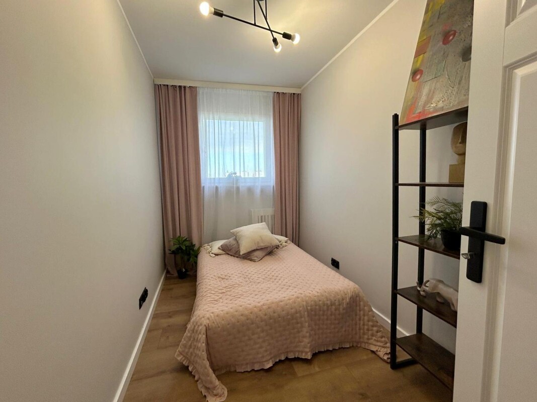 Lokal składa się z salonu połączonego z aneksem kuchennym, 3 odrębnych sypialni, łazienki z wc i przedpokoju. W salonie balkon.