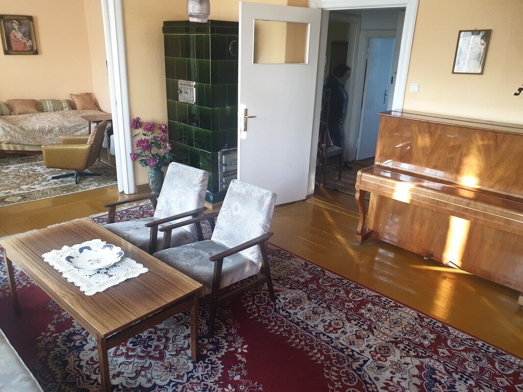 Mieszkanie znajduje się na pierwszym piętrze budynku wielorodzinnego. Ściany malowane, podłogi z desek drewnianych (w kuchni gumoleum), okna i drzwi drewniane. Wyposażone w instalacje: wodociągową, kanalizacyjną oraz elektryczną. Ogrzewanie piecowe. Lokal wymaga remontu – to świetna okazja, by zaaranżować wnętrze według własnego gustu!