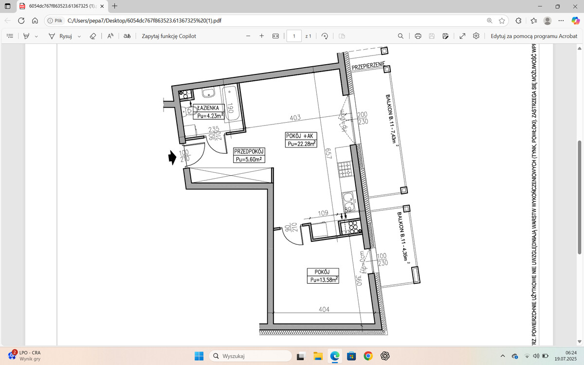 - 2 przestronne balkony – 7,43 m² (salon) oraz 4,35 m² (sypialnia),